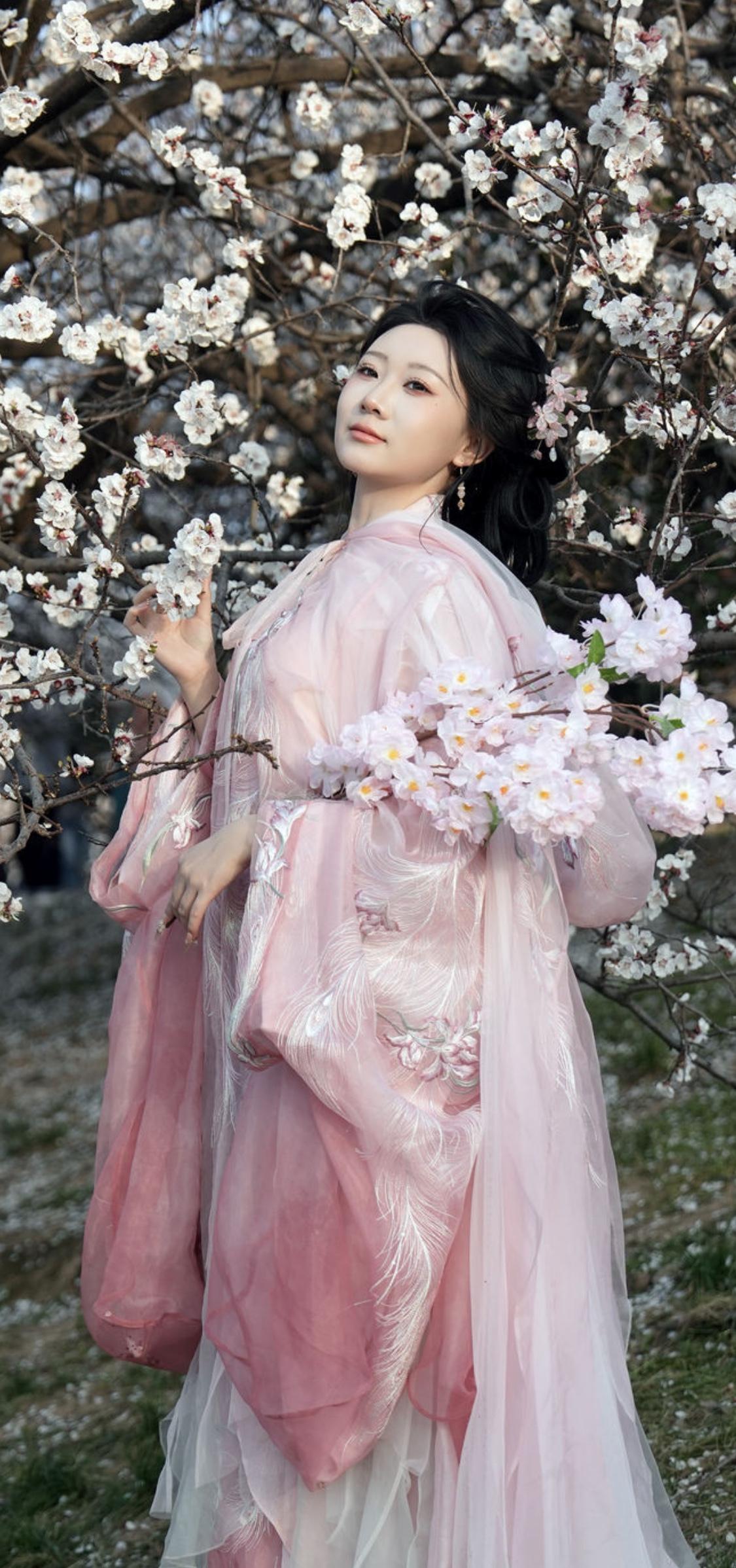 樱花树下,粉裙飘飘,仙气飘飘,美不胜收!🌸💕