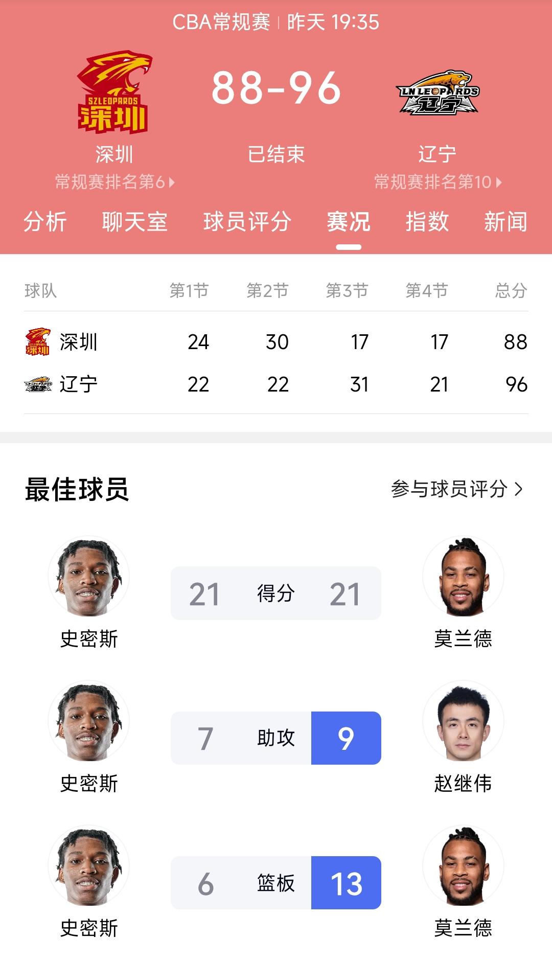 昨天辽宁男篮客场96:88战胜深圳男篮的比赛真的让人热血沸腾。看到新加盟的外援哈维进攻能力很强,看到莫兰德投进两个3分球让人热泪盈眶。即便上半场辽宁男篮落后深圳10分,可是第3节惹不起的辽宁男篮又回来了,一波小高潮将比赛局势彻底扭转。 看到这里我认为补强了外援之后辽宁男篮进季后赛基本上十拿九稳,接下来就是要继续磨合阵容、挖掘阵容深度,争取能够走得更远。毕竟浙江广厦,上海男篮、北京首钢的实力均在我们辽宁男篮之上,辽宁男篮想要冲击队史第5冠还需要继续努力才行。