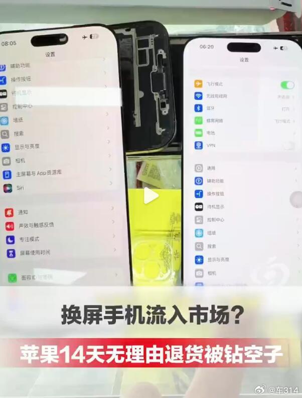 哎,又是这样的事情,苹果的好政策,总会被一些偷奸耍滑的人给玩坏!骚操作是这样的:在直营店买iPhone,将原装屏幕拆下,换成第三方便宜的屏幕,再利用苹果的14天无理由退货政策,把手机退给苹果,导致被换了第三方屏幕的手机流入市场。然后呢,一换一退,光是屏幕的差价就能赚1100多元,而且不用承担任何购机成本,还能获得一块苹果原装屏幕。不得不佩服吧?全世界最聪明的人,都在中国!就是这群贪小便宜的人,破坏了整个市场的秩序,苹果为了止损也只能将政策收紧,最终受害的就是正经使用的普通玩家。也奉劝那些天天琢磨歪门邪道的家伙:做个人吧!苹果回应有人换屏退货赚差价网友反映苹果手机遭恶意换屏退货苹果