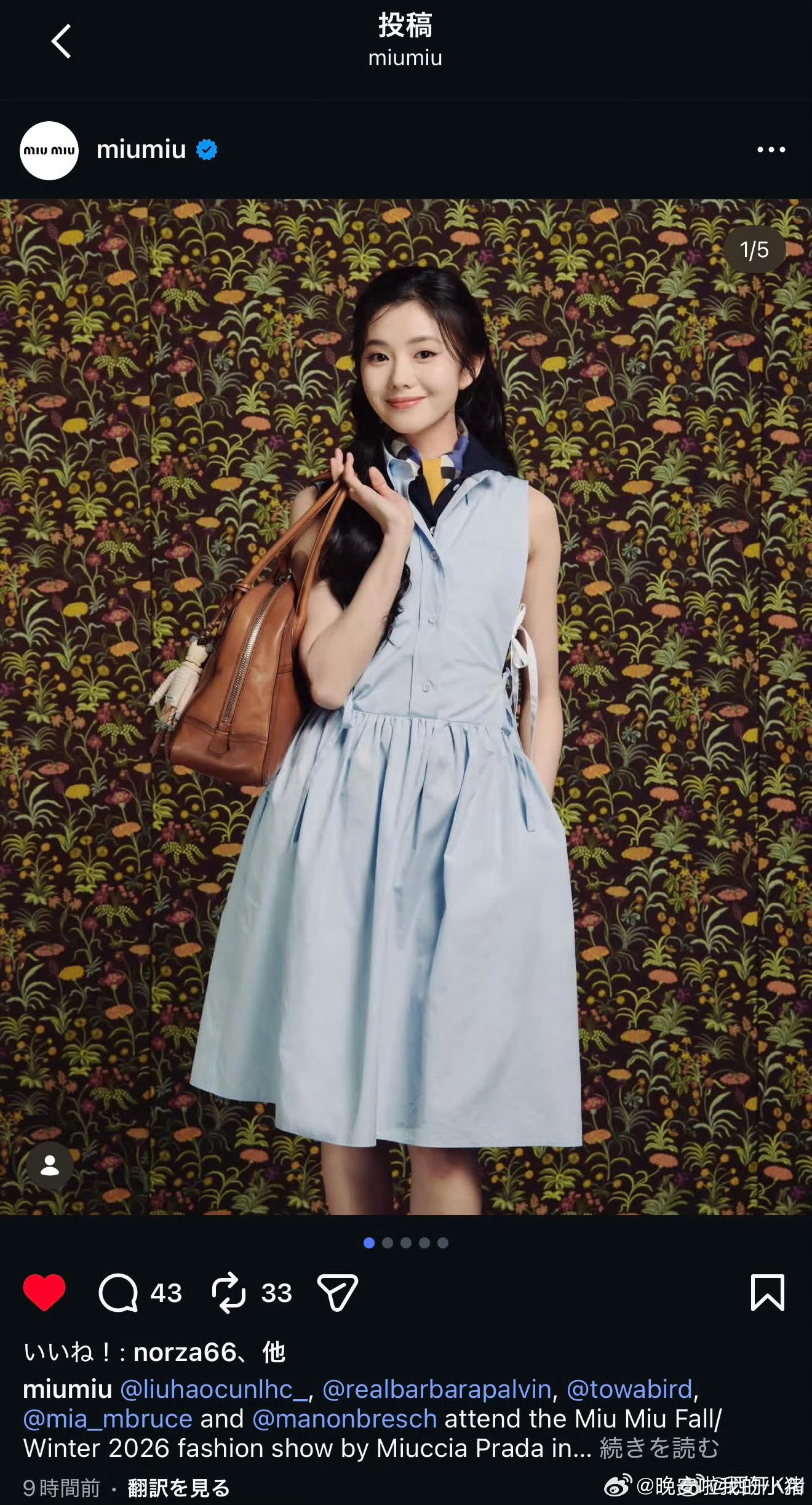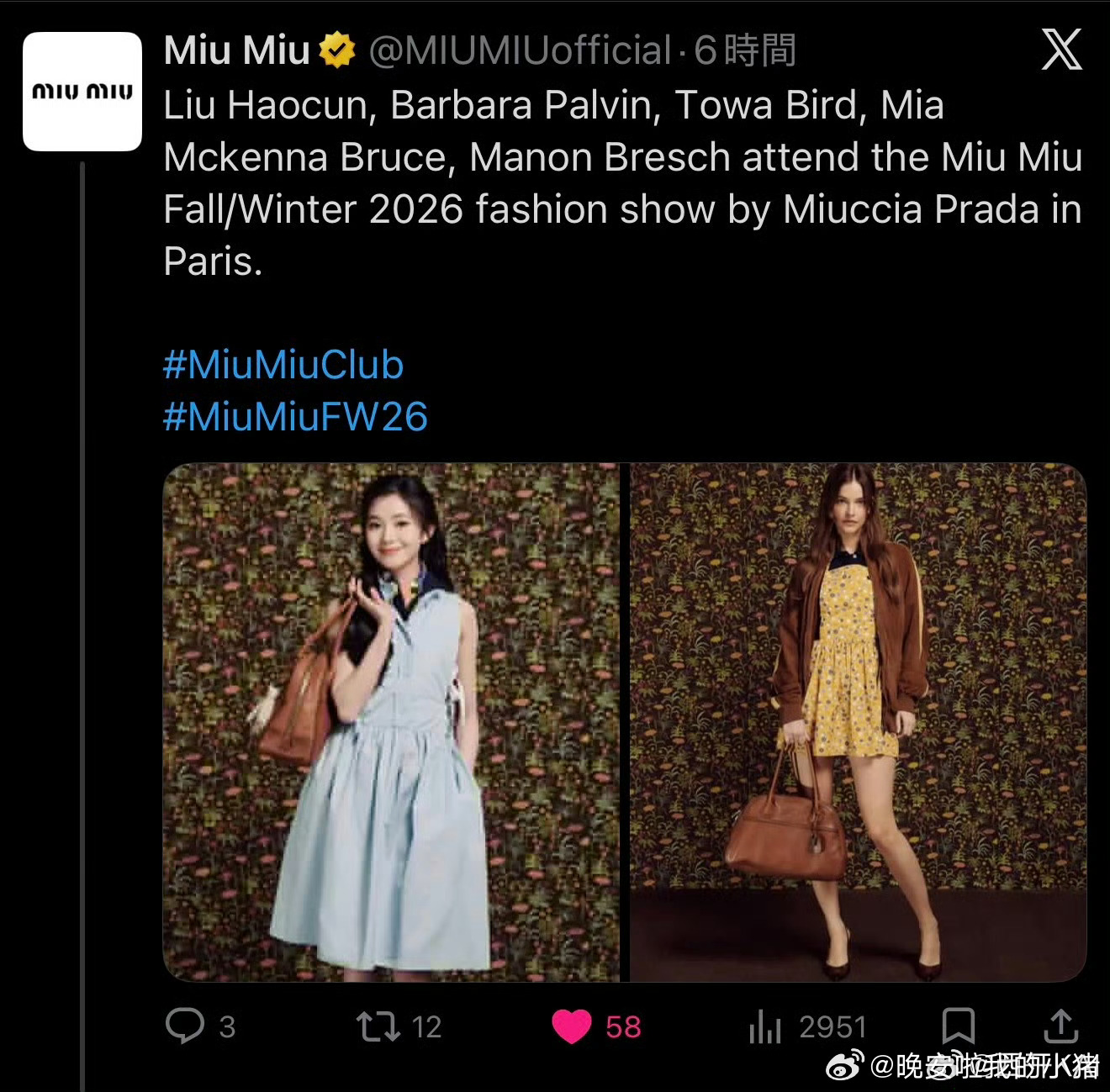刘浩存巴黎时装周待遇好强,X出发图全球首位认领🈶 ins、X压轴认领且封面图🈶Facebook 亚洲面孔首位认领🈶