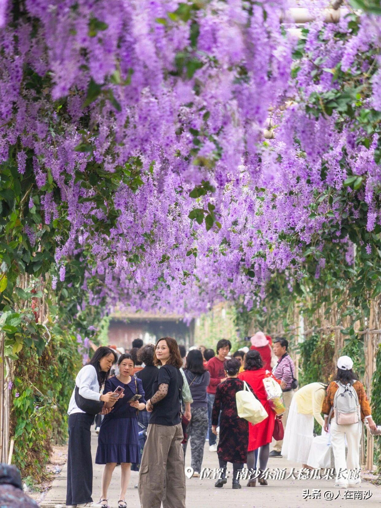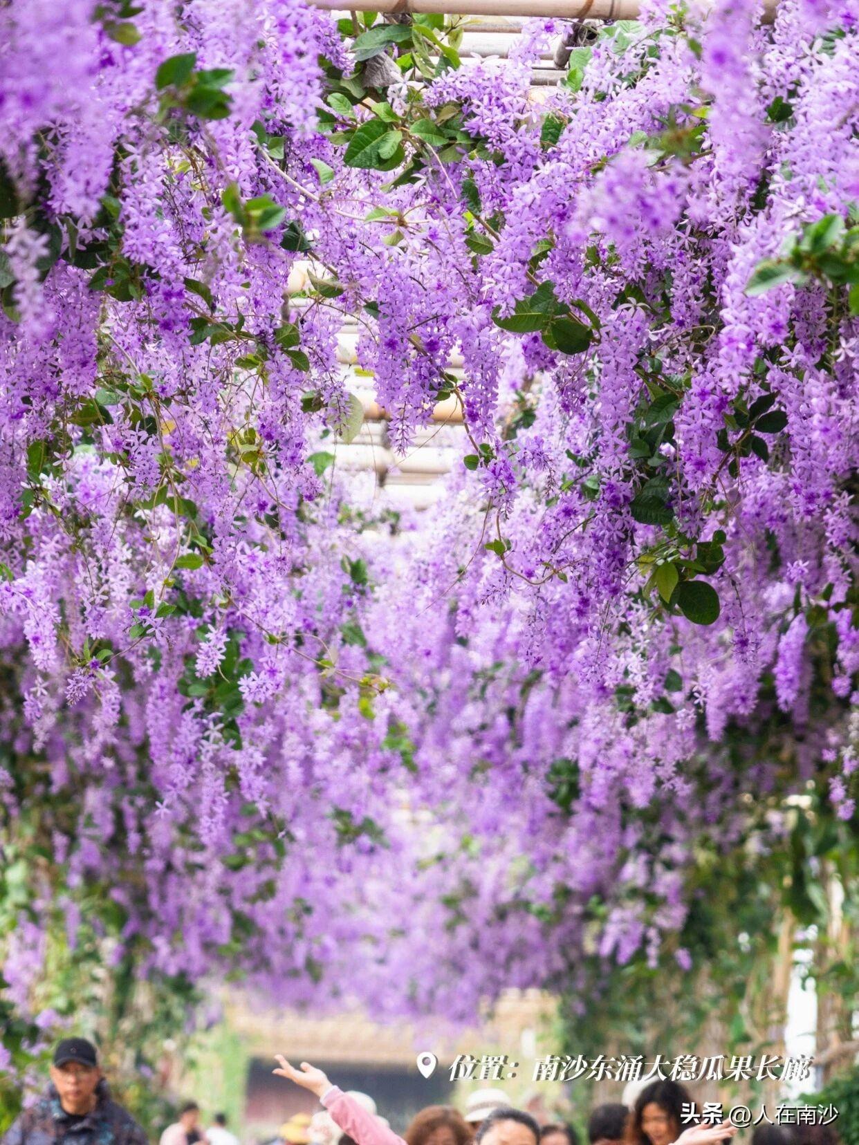 【大稳瓜果长廊不仅有瓜看啦!】每年都靠看瓜火爆的大稳村今年换花样啦,一条紫色的蓝花藤瀑布已经开始迎客了! 瓜果长廊去过几次,现在还有个桥下公园,停车也方便多了。遗憾的就是配套比较少,上次去买个水都难,希望可以升级升级,多搞点花样吧!