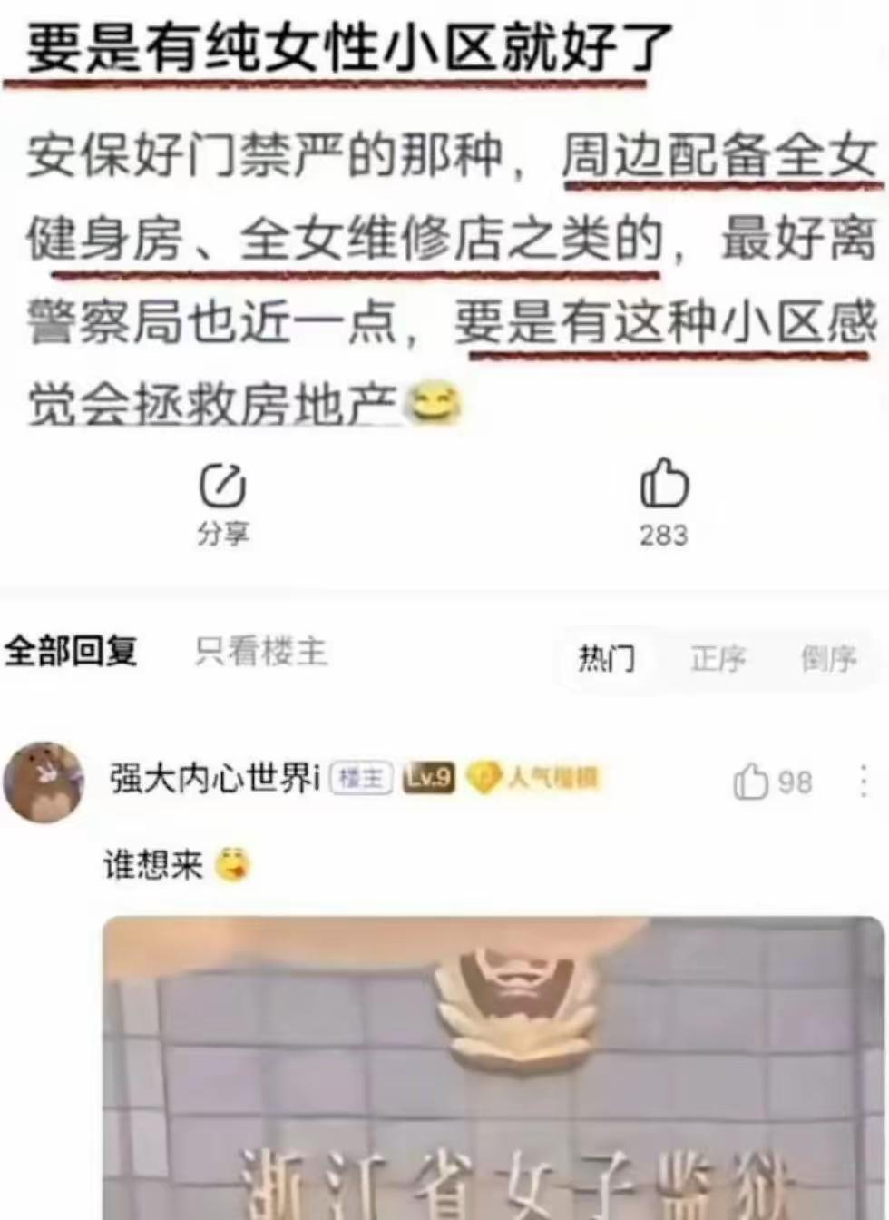 纯女小区?真有创意,纯女车想想结果,纯女酒吧咖啡厅呢?