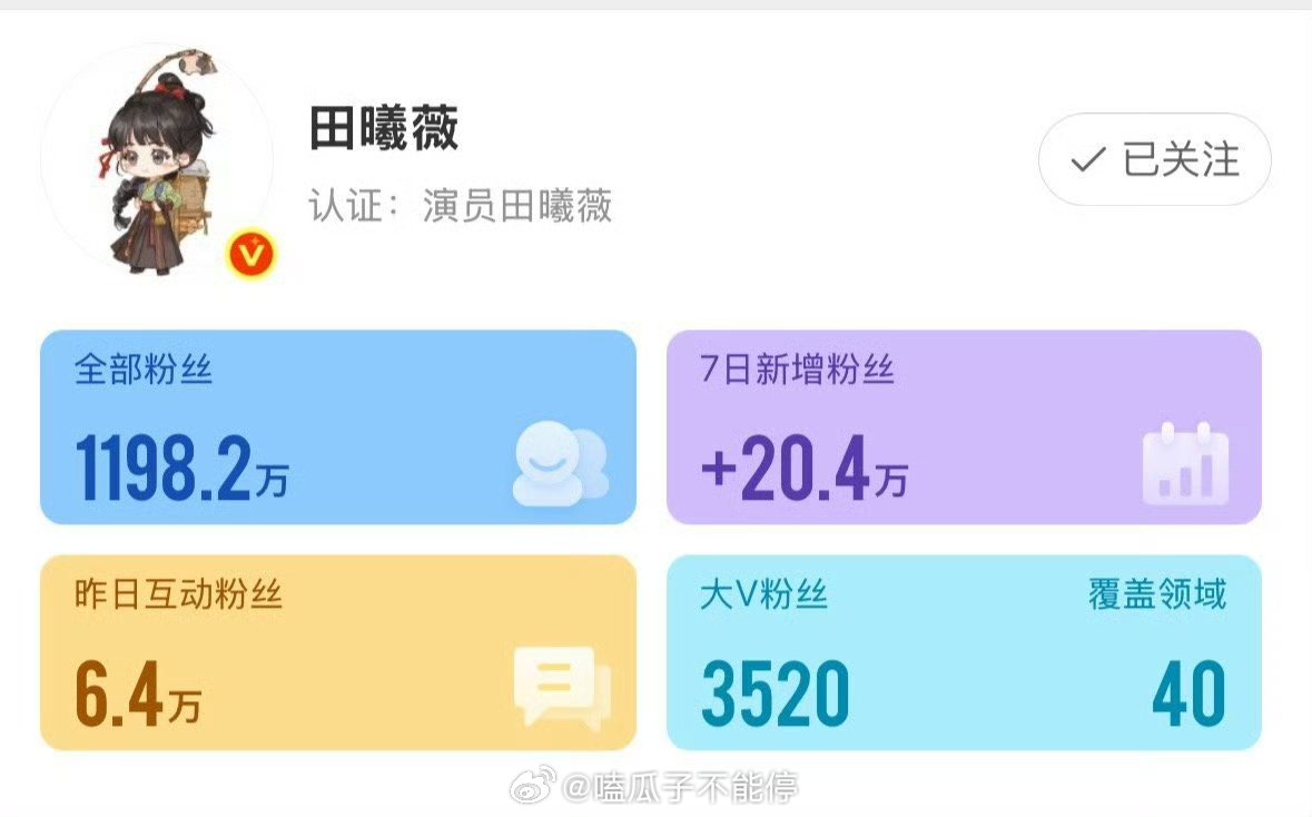 张凌赫七天涨粉近30w,田曦薇涨粉20w。
