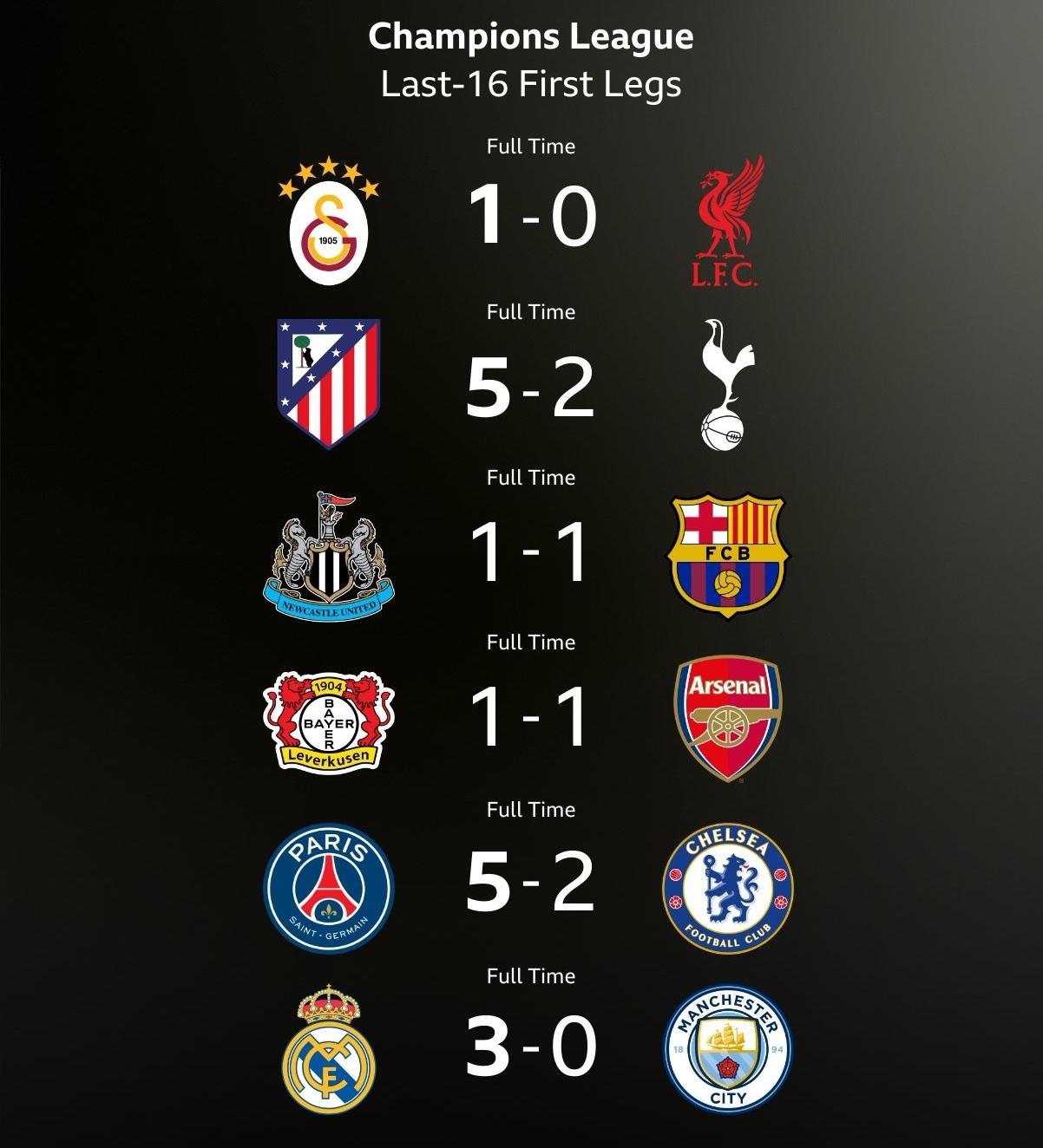 世界第一联赛!就这实力? 欧冠淘汰赛首轮结束,公认世界第一的英超联赛六支球队出战却一胜难求,战绩2平4负,让球迷们大跌眼镜!在联赛阶段战绩彪炳的英超球队,进入淘汰赛后好像集体坐上了降落伞! 如果说热刺和切尔西大比分输球是因为教练信错了人,让替补门将首发犯下低级失误导致球队崩盘!那么,曼城和利物浦输球则完全是因为自身发挥欠佳导致,曼城首回合输给皇马三球,想要翻盘只能寄希望于发生奇迹了,哈兰德也必须站出来了,不能再当大赛软脚虾了!利物浦的情况稍好一些,客场只输了一球,次回合主场作战还是五五开的局面,看红军能不能完成自我救赎了!英超领头羊阿森纳被勒沃库森逼成这样也确实让人没想到,都以为他们抽了个好签,保送四强了,现在看都是假象啊!纽卡斯尔成了英超球队中唯一表现亮眼的,可惜补时阶段被判点球,让巴萨绝平了,遗憾的错失了一场胜利! 六支球队进入十六强本来是巨大的优势,没想到淘汰赛首轮结束,这个优势就荡然无存了!综合淘汰赛首轮的战绩和球队状态来看,英超球队很可能只有2支球队能够进入八强,最坏的情况则是全军覆没,八强中没有一支英超球队!