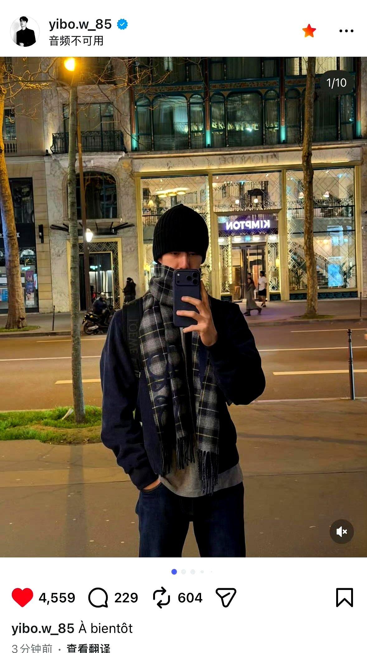 内娱的精致人设,快被王一博的生图干翻了。 刚结束巴黎时装周,跑完香奈儿、罗意威的秀场,他转头就在ins发了一组怼脸自拍。卷发、冷帽,配着后朋克摇滚,像个在外游学的留学生。 没有精修,没有营业腔,一句法语“À bientôt”(很快再见),就像远方朋友寄来的明信片,满是自由探索的野性。 粉丝直接炸了,说这才是活生生的人,不是流水线上的完美商品。所谓“生图抗打”,内核其实是对真实力量感的渴望。 当所有人都在用力扮演,松弛感反而成了顶级魅力。