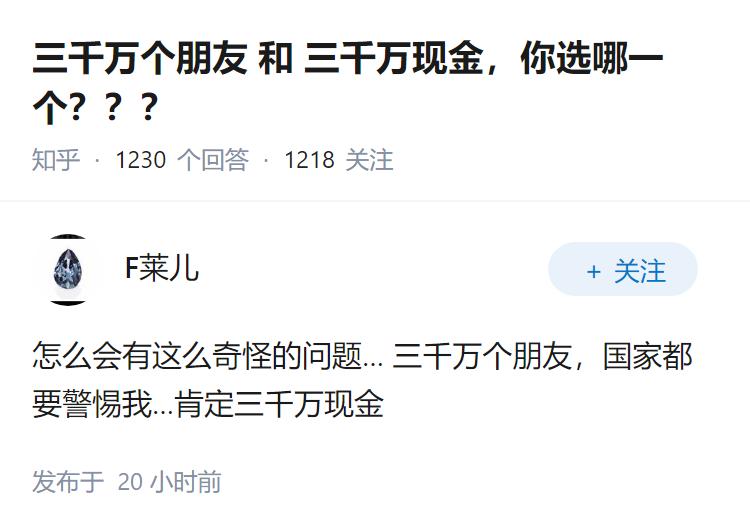 三千万个朋友和三千万现金,你选哪一个???