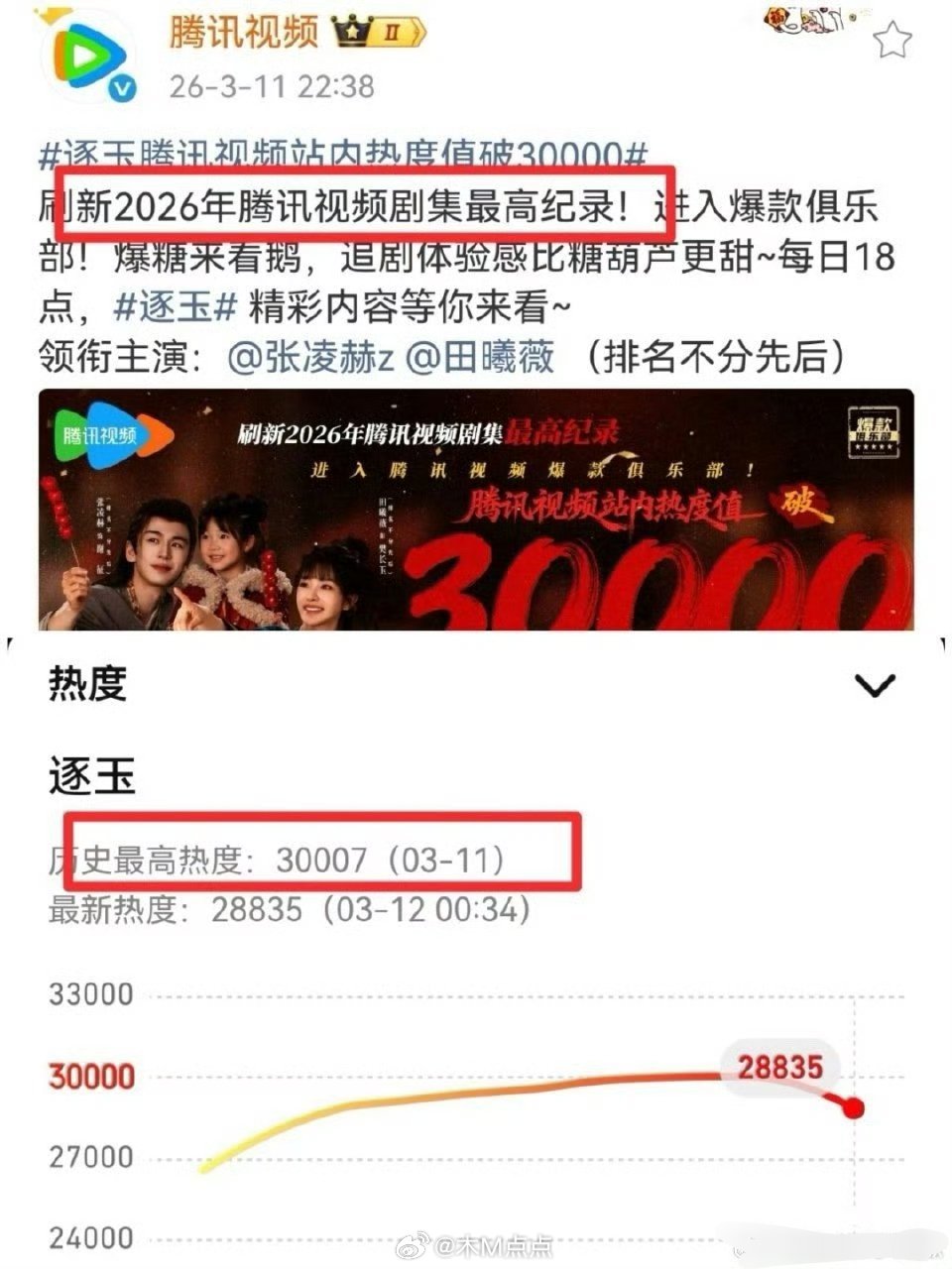 骄阳似我 逐玉,腾讯视频版头有9部爆剧 旺仔小锦鲤鱼 AI取代观众 业内退网两个月突然发声了🤔 史上首部双平台破万剧出生了,步子迈太大了!本身就已经很夸张了,双平台破万就是历史第1⃣️啊鹅居然也破万了~ 逐玉爱奇艺率先破万了,上半年播的这些剧,2000集均都已经很厉害了,逐玉要往6000+上干鹅桃保持各3广,至今没🥕 逐玉怎么做到的剧播到现在把狂飙,藏海传,骄阳似我,猎罪图鉴,庆余年,卿卿日常…剧粉都惹了,逐玉目前是双平台连播剧播的最好的吧?已经超过了当年的亲爱的热爱的 目标的历史第一!目前骄阳似我剧粉维权。腾讯视频🐧又闯祸了表示2026最高热度是骄阳,要求给个交代 逐玉最新最高热度30007并未刷新2026年腾讯视频剧集最高纪录,骄阳似我历史最高热度30130……骄阳似我剧粉维权成功了 🐧把逐玉大字报改了,2026年的最高热度 改成了 “2026年开播最高纪录”逐玉破万 经纪人亲一个 逐玉🥝🐧率先破万了,你想说什么?骄阳似我剧粉维权,田曦薇第一位双平台破万女演员