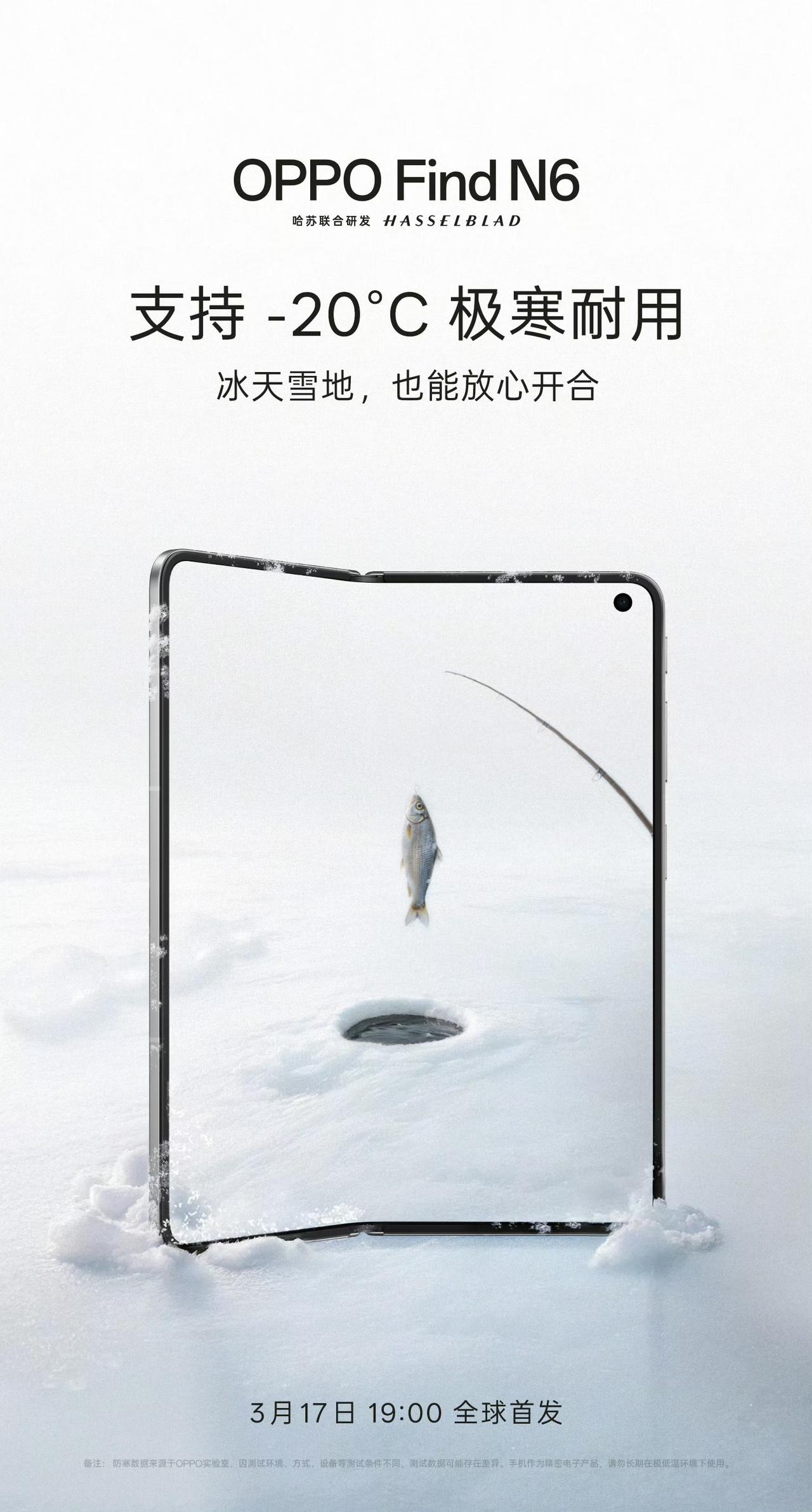 🎉在全球最平整的背后,可靠耐用也是必不可少的 💦OPPO Find N6 搭载 IP56 / 58 / 59 满级防水 🥶同时在零下 20 度极寒情况下也能保障耐用性 无惧环境挑战,久用平整,3月17日 19:00 全球首发!