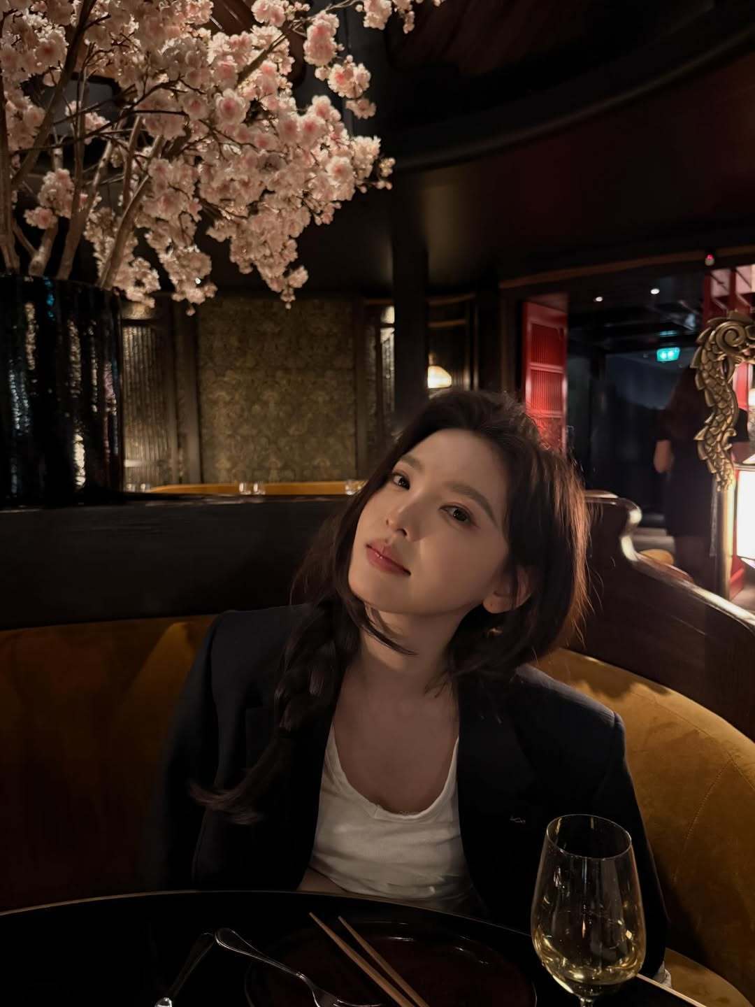 46岁秦岚在宁波一家餐馆吃饭,和老板一起拍摄合影。她看起来好年轻,身材太好了!