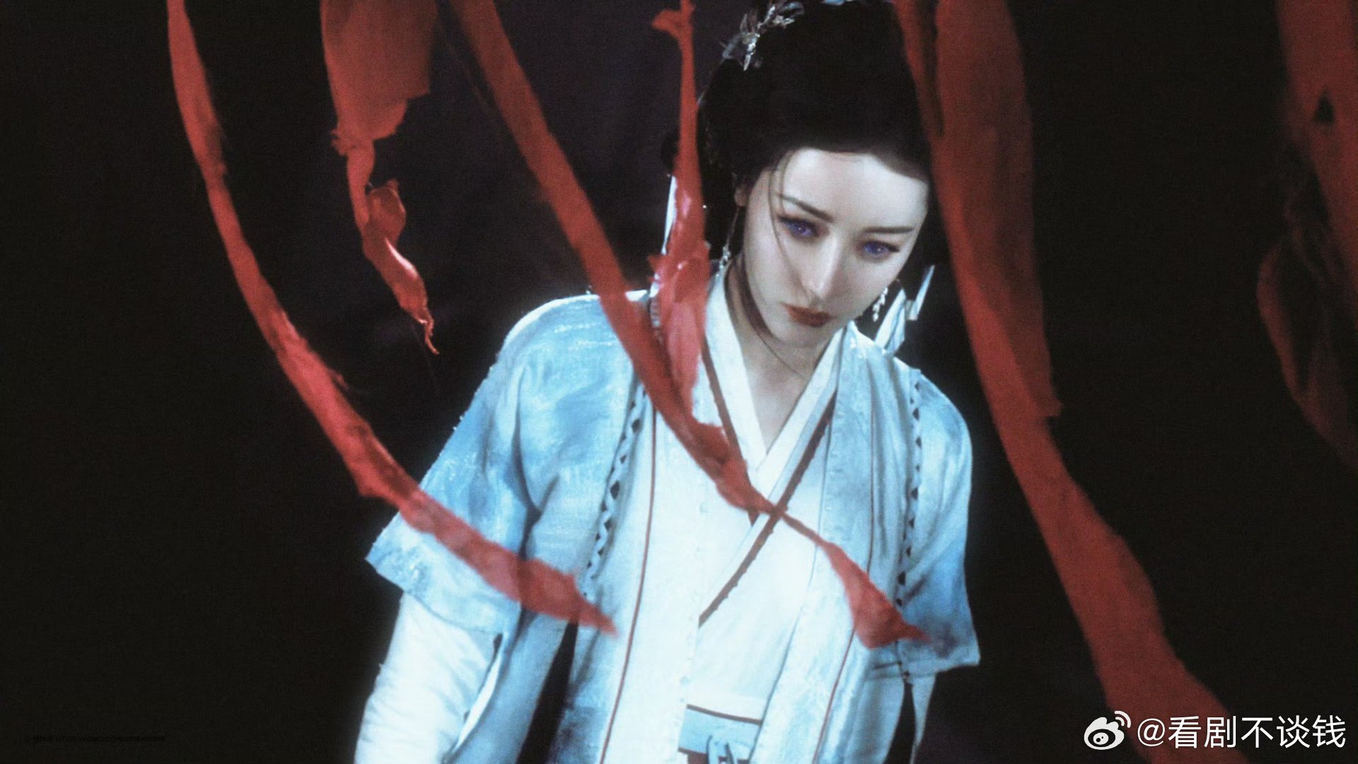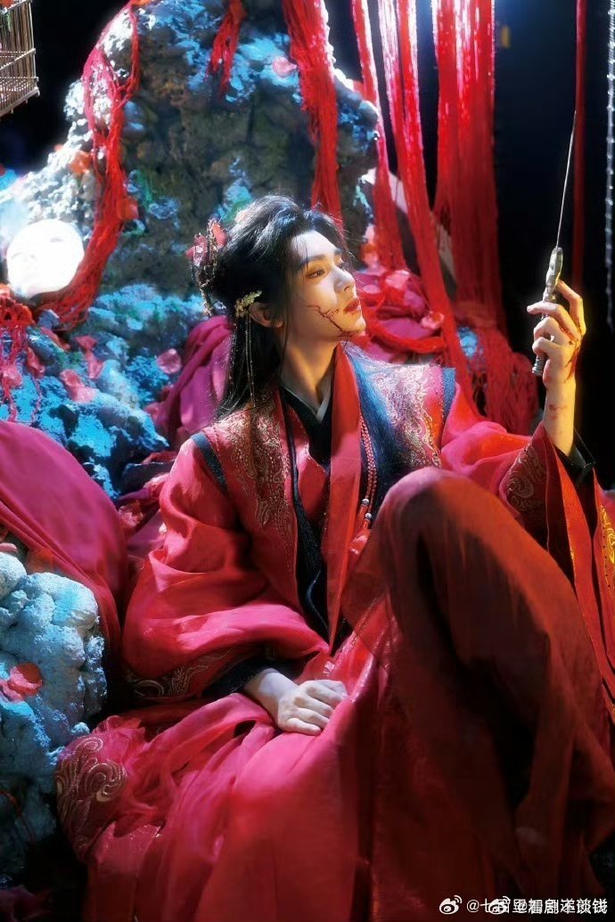 李一桐《金枝》陈雀儿蓝色造型路透, 完全是古偶孔雀塑来的!!