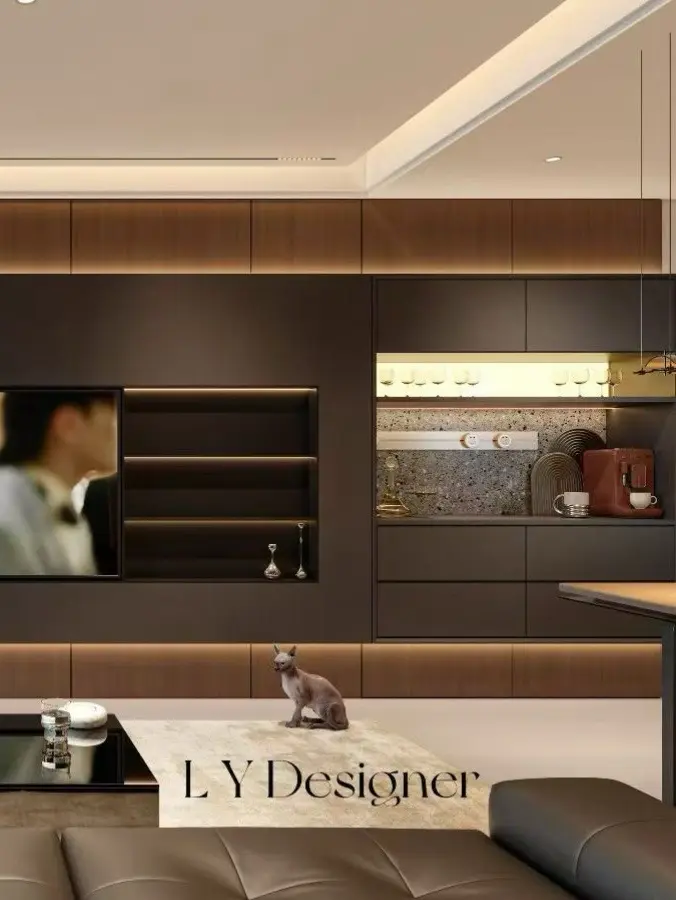 电视墙旁边大多会有承重墙或者连接着餐边柜大家纠结怎么融合今天分享...