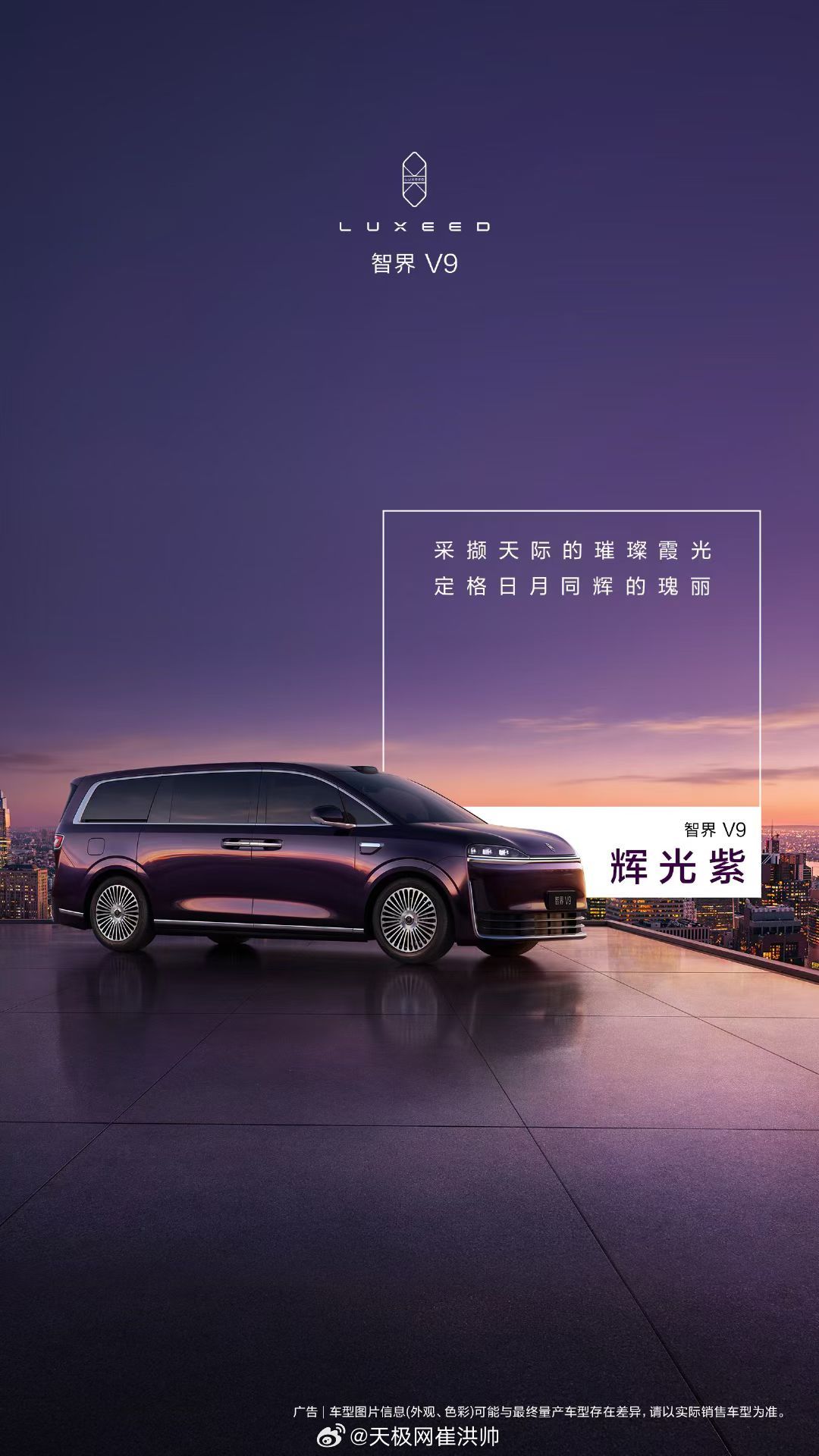 智界v9的四种配色,押辉光紫成为爆款。