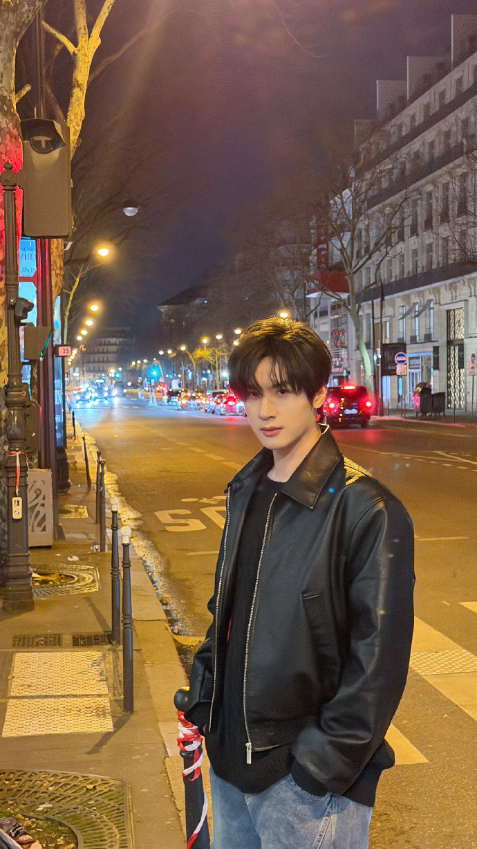 展轩收工后松弛一刻展轩收工后松弛一刻,展轩黑皮衣街头随拍~