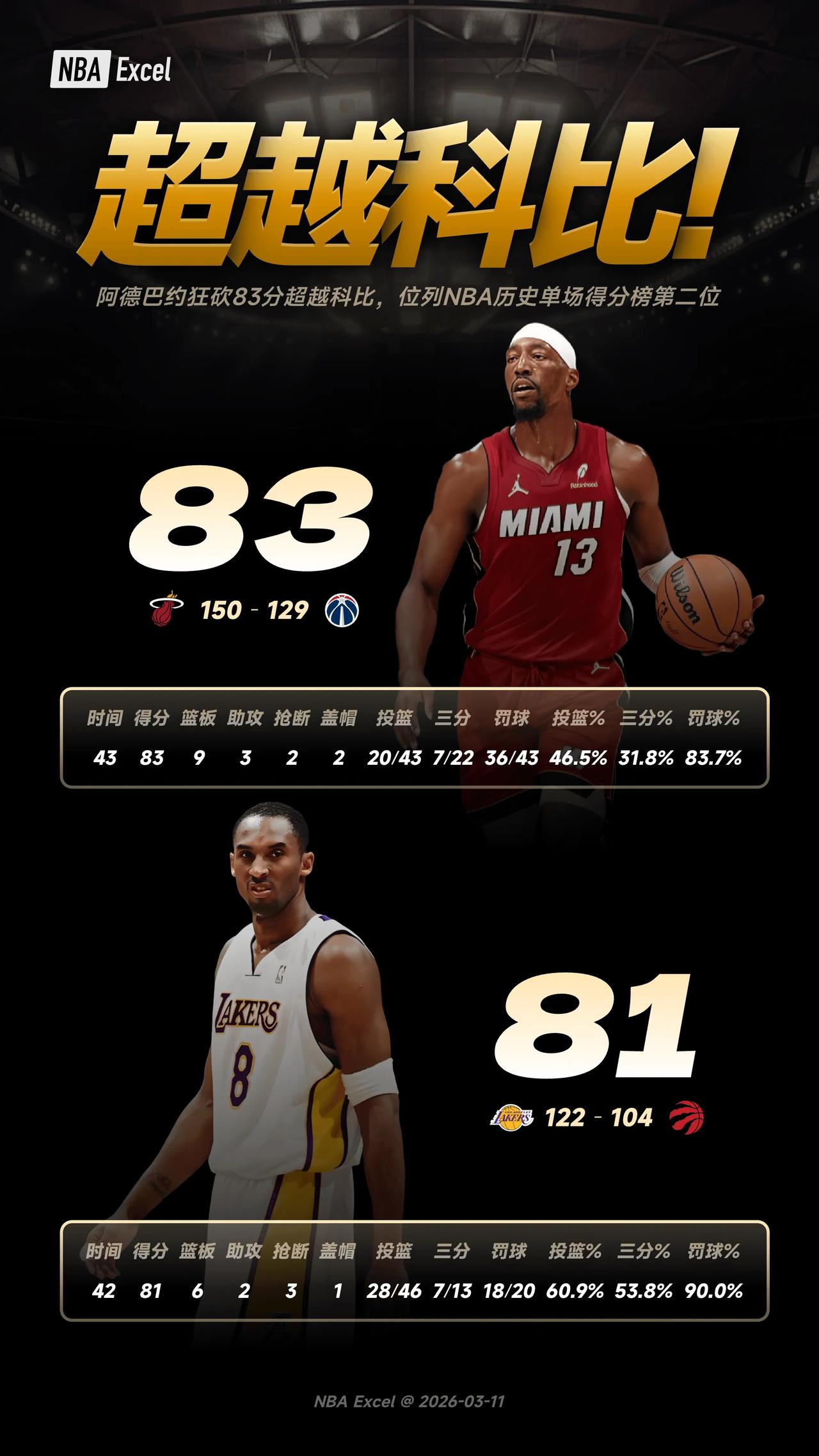 我觉得阿德巴约和斯波有点不明智啊,刷到83分超越科比就下场被外界说了2天,如果只拿到81分就下场,致敬科比那肯定会赢来一片美誉的,别人也不会一直追着说他刷分的事情了,怎么当时斯波和热巴就没有想到呢?搞得现在毁誉参半[捂脸]