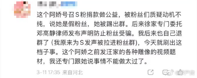 与此同时也有粉丝指出这位“阿嬌”曾被大S粉丝怀疑是假粉丝号召捐款动机不纯。(图4)