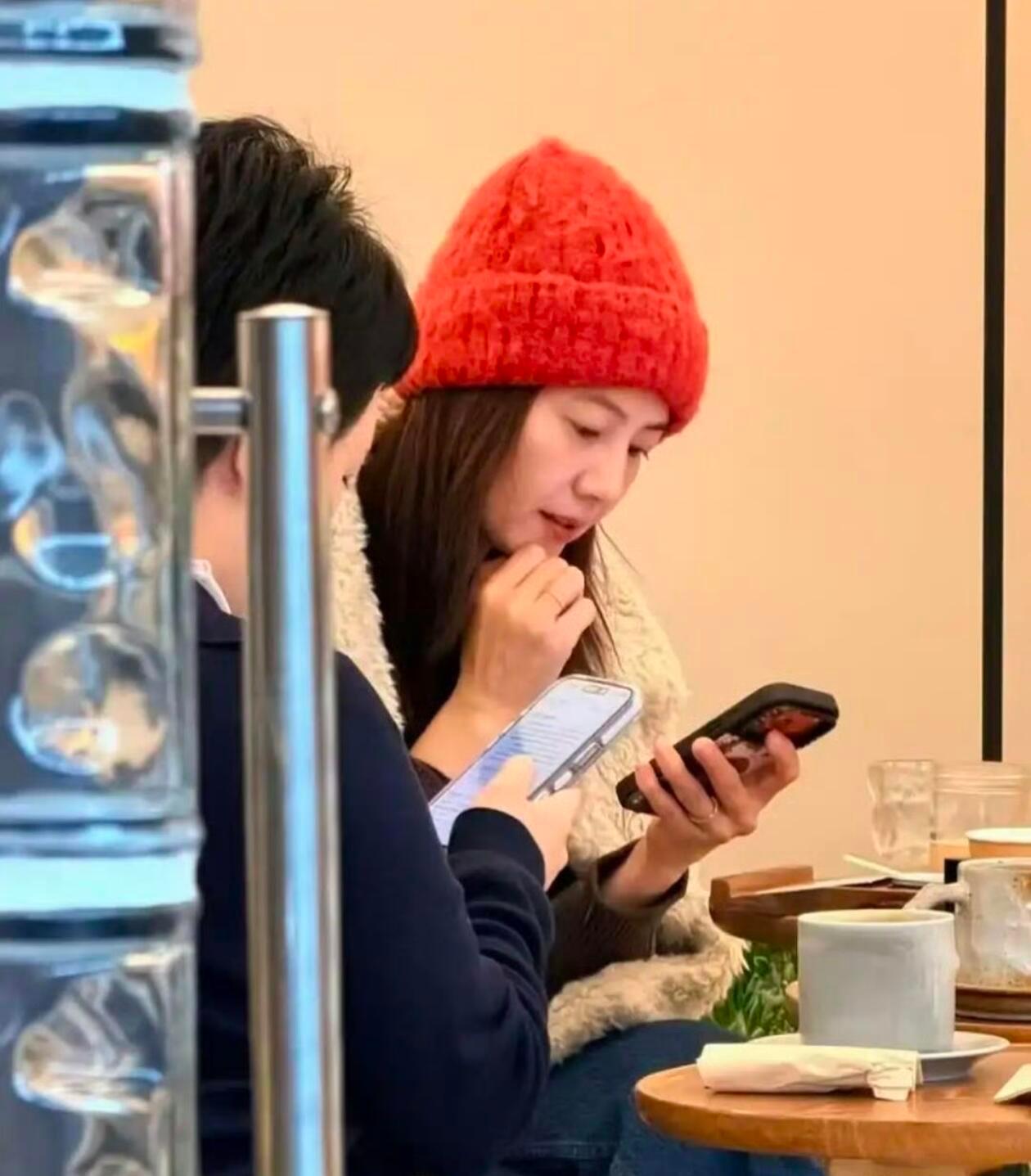高圆圆素颜和朋友相聚,笑起来感觉就不一样