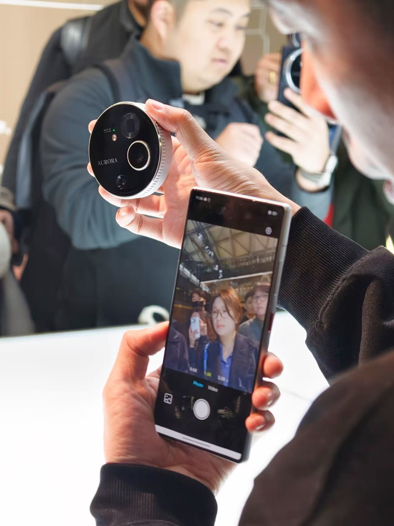 AWE目前能上手体验的这台是AURORA NEX LS1,玩的移动影像和模块化,独立影像模块内置Soc、传感器、存储、供电和通信连接系统,可脱离手机本体工作。