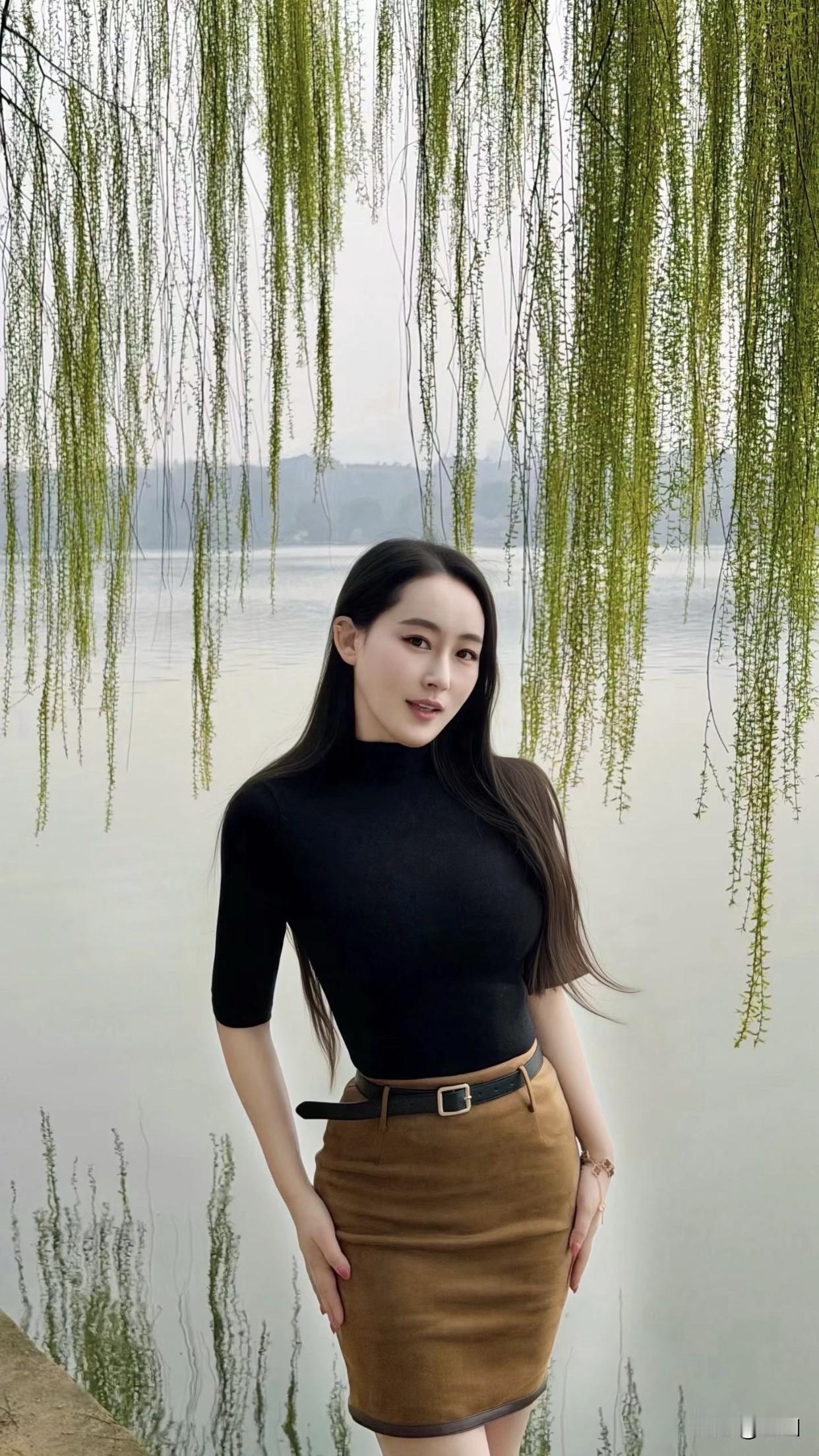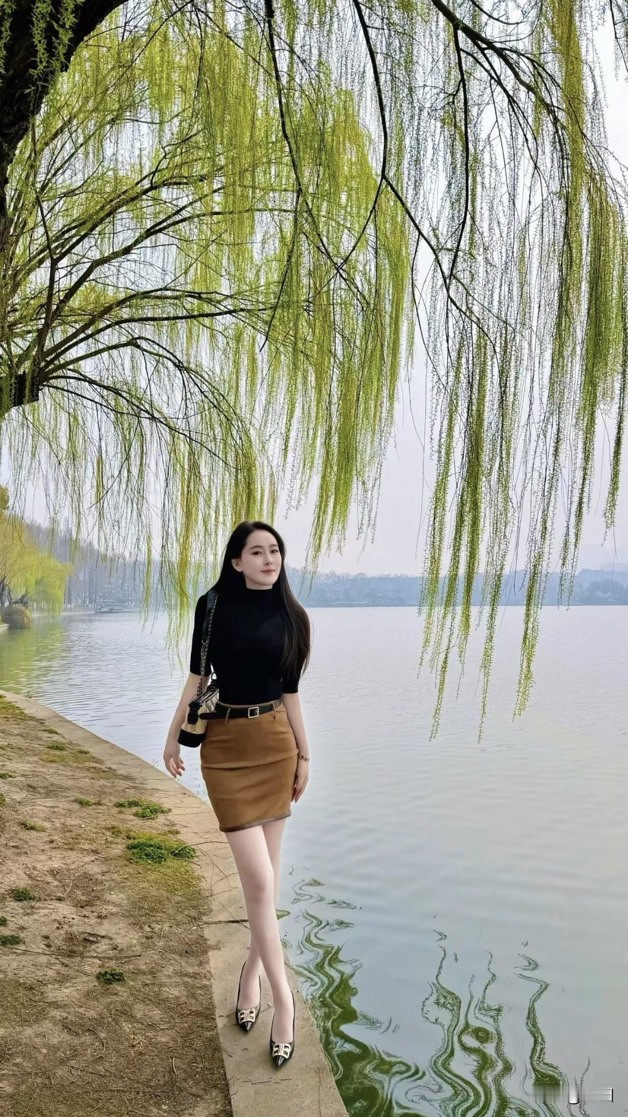 如何穿搭出满满高级感?湖畔垂柳拂,美人倚水立。