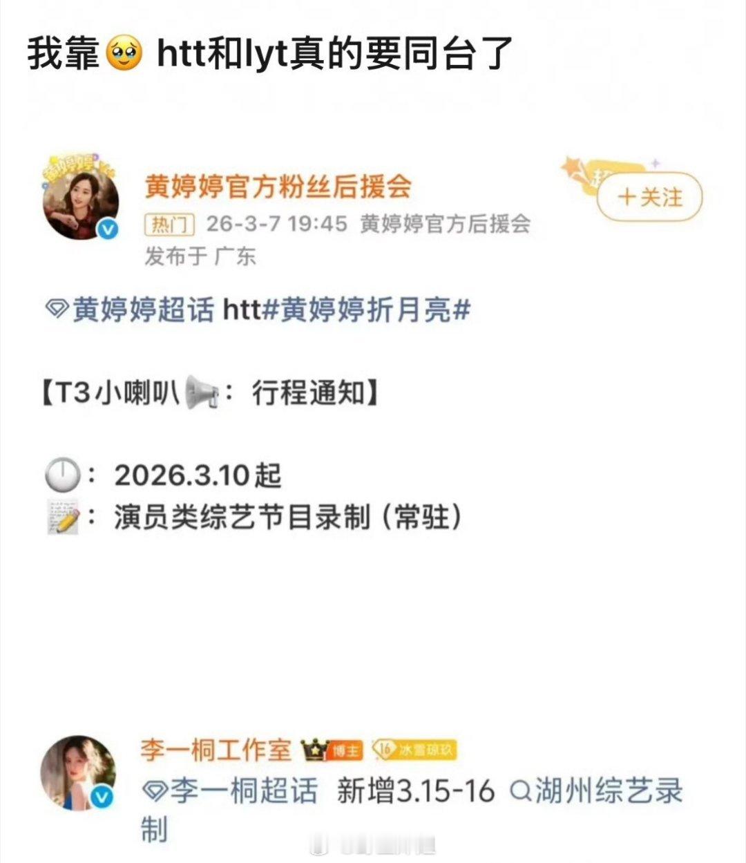 有眼尖的网友发现黄婷婷跟李一桐好像要同台录制综艺了,两个人同一天的行程都是一样的,可信度瞬间就高了