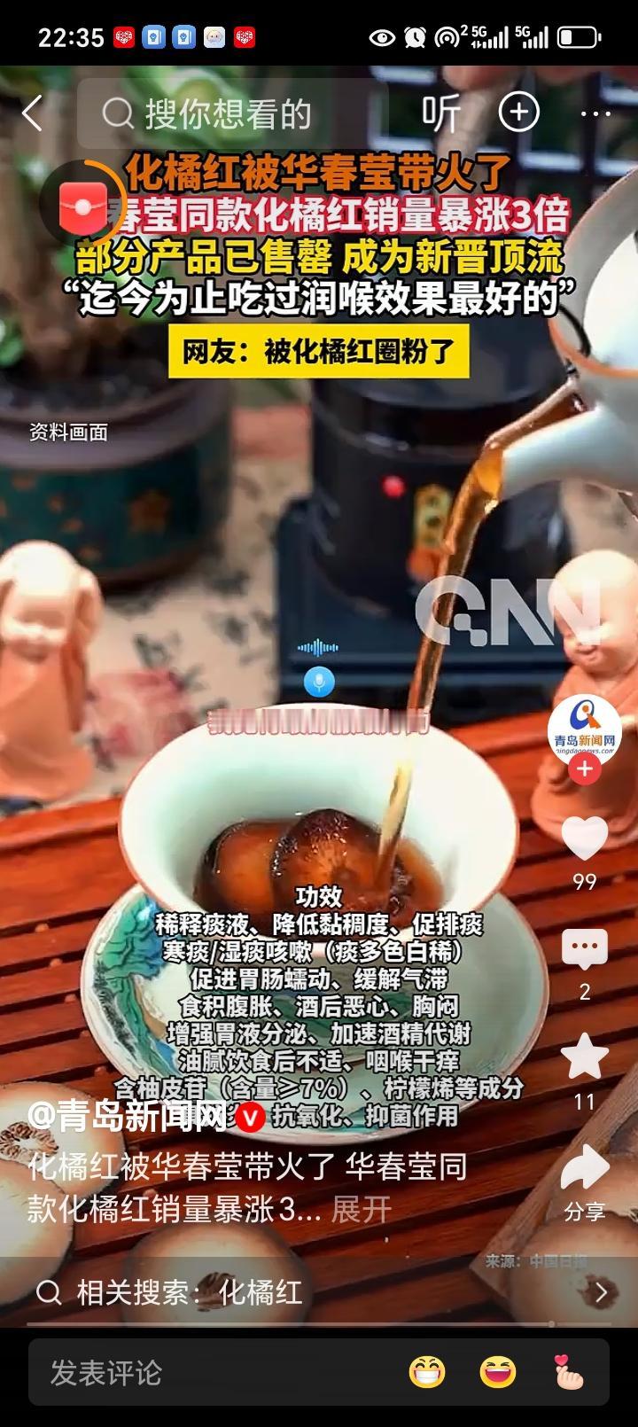 近日,药食同源的化橘红引发关注,登上社交媒体热搜。3月7日全国两会现场,外交部副部长华春莹连吃两粒化橘红,称“刚才吃了一粒,立即很舒服”“是迄今为止吃过的润喉方面我觉得最舒服、最好的”。这种来自广东化州的小果子究竟有怎样的药用价值? 说起化橘红,很多人可能还不太熟悉,但它在广东乃至整个南方地区却是家喻户晓的“润喉神器”。它不仅是传统中医药里的常用良品,更因其独特的药食同源属性,成为现代人追求健康生活的新宠。它究竟凭什么赢得了华春莹副部长的青睐?又为何能在两会这样严肃的场合引起如此大的关注? 首先,化橘红的药用价值并非空穴来风。作为橘子的一种成熟果实,经过特殊工艺晒制而成,化橘红富含挥发油、黄酮类化合物及多种有益成分,具有理气化痰、润肺止咳的功效。在春季换季、空气干燥的环境下,很多人都会感到喉咙不适,化橘红正好能够缓解咳嗽、喉咙干痒等症状,成为天然的“润喉糖”。 但这背后,更多的是对传统中医药文化的尊重与传承。化橘红不仅仅是一个小果子,更是广东化州这片土地深厚文化的结晶。它承载着当地农民的智慧和辛勤劳动,也代表了中国传统医药与现代生活的完美结合。华春莹副部长的亲身体验,无疑为这种传统良方注入了现代活力,也让更多人开始关注和认可中医药的独特魅力。 然而,化橘红的走红也提醒我们一个现实问题:在现代快节奏的生活中,我们是否忽视了那些被时间淹没的传统健康智慧?化橘红的火爆,不仅是对一种天然药食同源产品的认可,更是对健康生活方式的一次深刻呼唤。它让我们重新审视:真正的健康,或许并不在于复杂的化学制剂,而在于那些简单、自然且经过时间验证的传统良方。 当然,任何产品都不是万能的。化橘红虽好,也需理性看待,不能盲目神化。它适合大多数人日常润喉,但若有严重疾病,还是应当及时就医。更重要的是,我们要用科学的态度去传承和发展中医药文化,让更多像化橘红这样的宝藏走进千家万户,成为人们健康生活的坚实后盾。 你是否也曾用过化橘红?或者有其他传统中医药的养生小秘诀?欢迎留言分享你的故事,让我们一起探讨那些被时间沉淀的健康智慧,找到属于自己的养生之道。毕竟,健康生活,从了解和尊重开始。化州橘红的作用 化橘红饮料