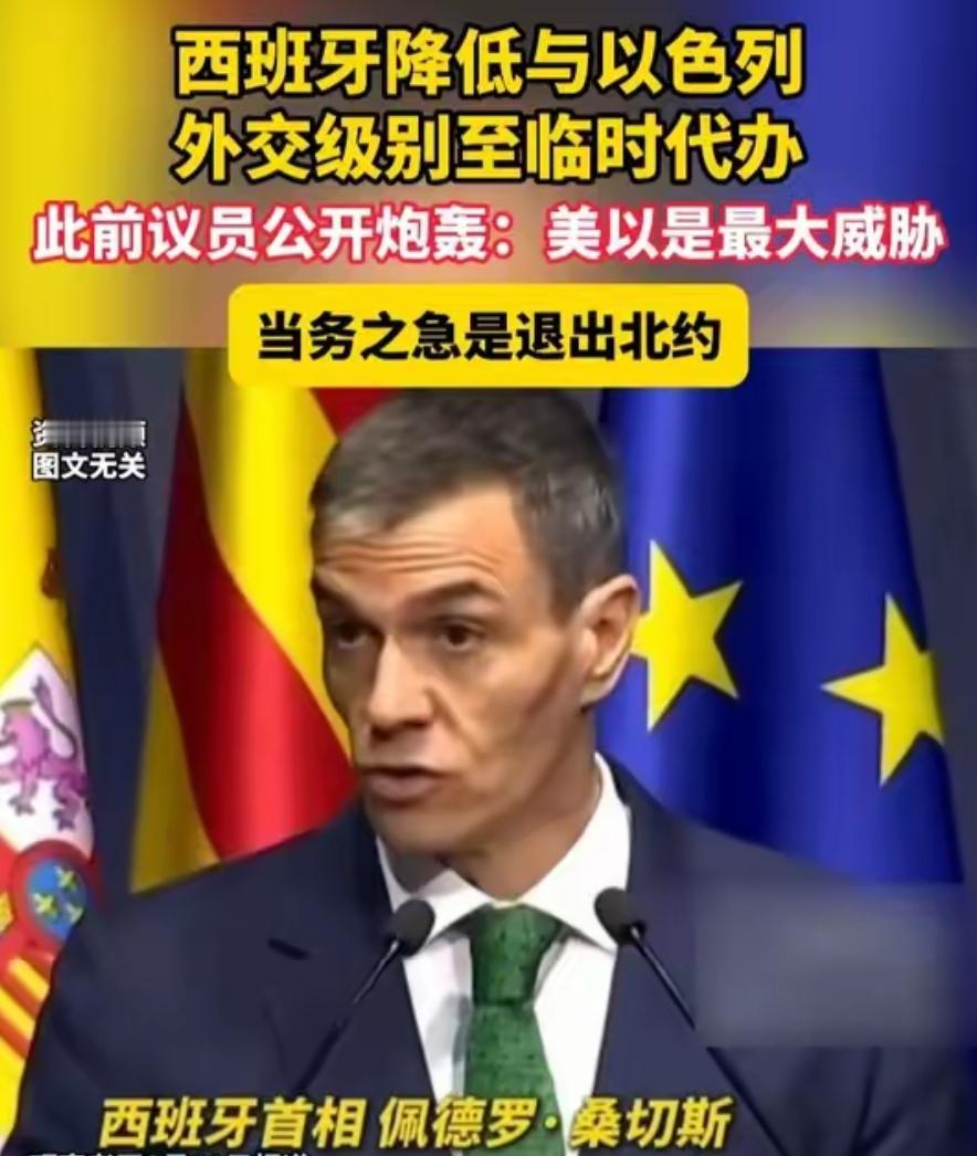 重磅!西班牙永久撤回驻以色列大使,欧洲硬气表态! 不跟美以同调,西班牙直接把外交级别降到临时代办,摆明立场:站人道、守公理、反战争。 这不是临时摆姿态,是西班牙国王费利佩六世3月10日签署皇家法令、内阁会议正式敲定的永久决定,驻以大使安娜·玛丽亚·萨洛蒙的职务直接终止,不再续任 。早在2025年9月西班牙就已把大使召回国内磋商,时隔半年直接落地降级,态度没有半分含糊 。 西班牙这么做有实打实的对等依据,以色列2025年9月就撤回驻西大使且长期不派新官,西班牙只是把双边关系拉回对等水平。这种操作完全贴合国际外交惯例,不是无端挑衅,更不是情绪化拍板,是外交场上的正常反击。 欧盟早就多次谴责以色列定居点政策和加沙军事行动,西班牙只是把欧盟的口头立场变成了动真格的外交动作。欧洲多数国家碍于利益不敢硬刚,西班牙直接挑明态度,打破了欧洲的模糊观望,成了欧洲反战的急先锋。 美国连续在安理会否决停火决议,无条件给以色列输送军事支持,这种一边倒做法早就背离国际人道共识 。西班牙不跟着美国的节奏走,守的是外交独立,更是最基本的平民生命底线,这才是大国该有的担当。 西班牙还同步落地对以武器禁运、限制港口与领空使用,一套组合拳全围着反战、护平民展开 。首相桑切斯直言不会因报复成为不义之事的同谋,这话够直白,也够有国家担当,更是戳中了国际社会的痛点。 桑切斯早就是欧洲对以最严厉的批评者,2025年6月就公开称加沙局势是“种族灭绝”,还要求欧盟停止与以色列的相关合作 。2025年10月西班牙议会更是批准将对以色列的全面武器禁运写入法律,彻底切断军售渠道 。 国际外交不该被地缘利益绑架,平民安危才是最该优先的事项,西班牙的选择给那些只讲利益不讲公理的国家上了一课。那些只把人道主义挂在嘴边、关键时刻却为利益让路的做法,在这一刻显得格外站不住脚。 各位读者你们怎么看?欢迎在评论区讨论。
