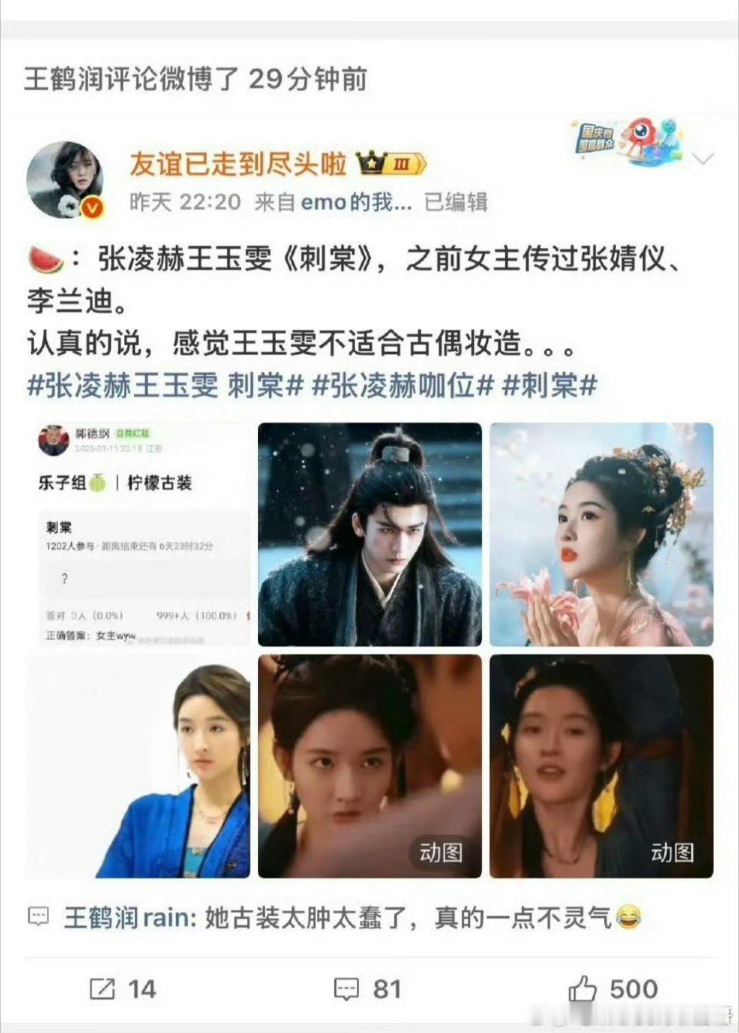 王鹤润说王玉雯古装太肿太蠢不灵气最尴尬的是她和王玉雯还认识