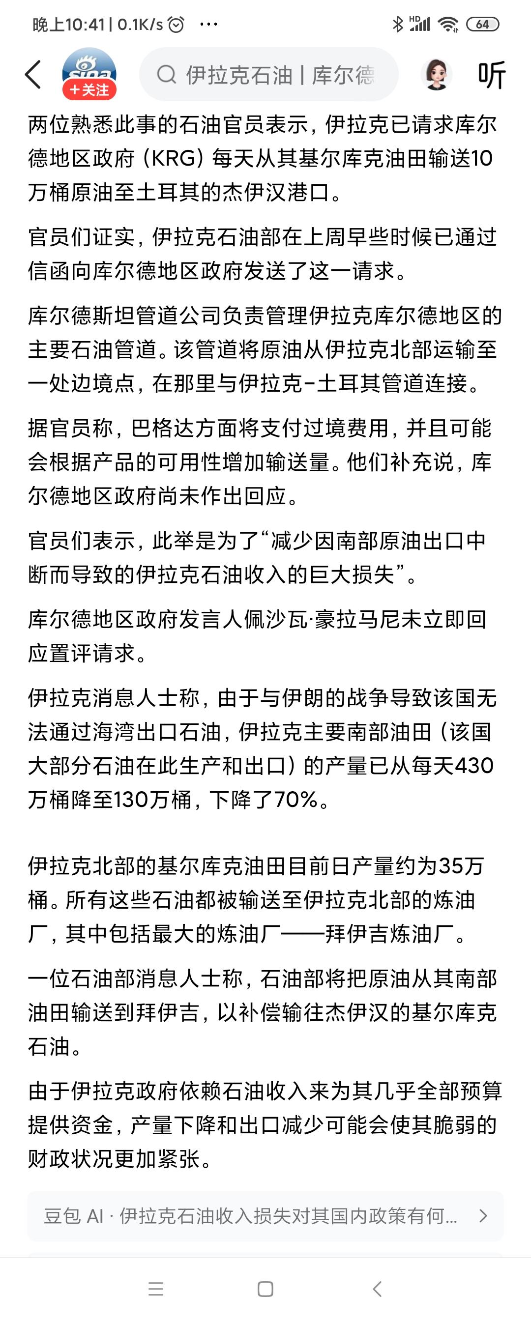 看看这段新闻,伊拉克求库尔德政府帮他们运石油到土耳其。 库尔德人跟土耳其总统埃尔多安是血海深仇,连内塔都称埃尔多安对库尔德人进行种族灭绝。 今年3月,埃尔多安连同朱拉尼对叙利亚的库尔德人发动进攻,杀了多少库尔德人! 伊拉克的库尔德人跟叙利亚的库尔德人同种同源,伊拉克的库尔德人会帮伊拉克运石油到土耳其吗? 库尔德人被英法殖民者分配到4个国家,只有伊拉克的库尔德人过得最美,等于已经自治了,伊拉克当局也默认了,只要库尔德人名义上属于伊拉克就行,只要他不建国就行。