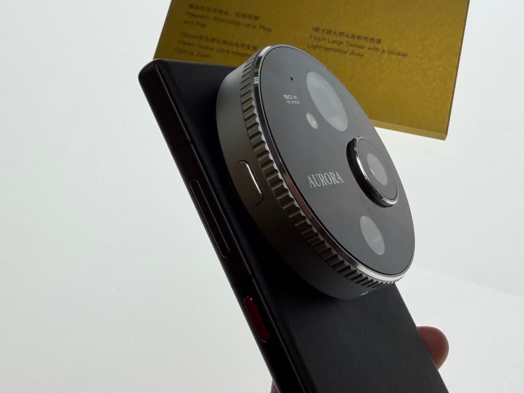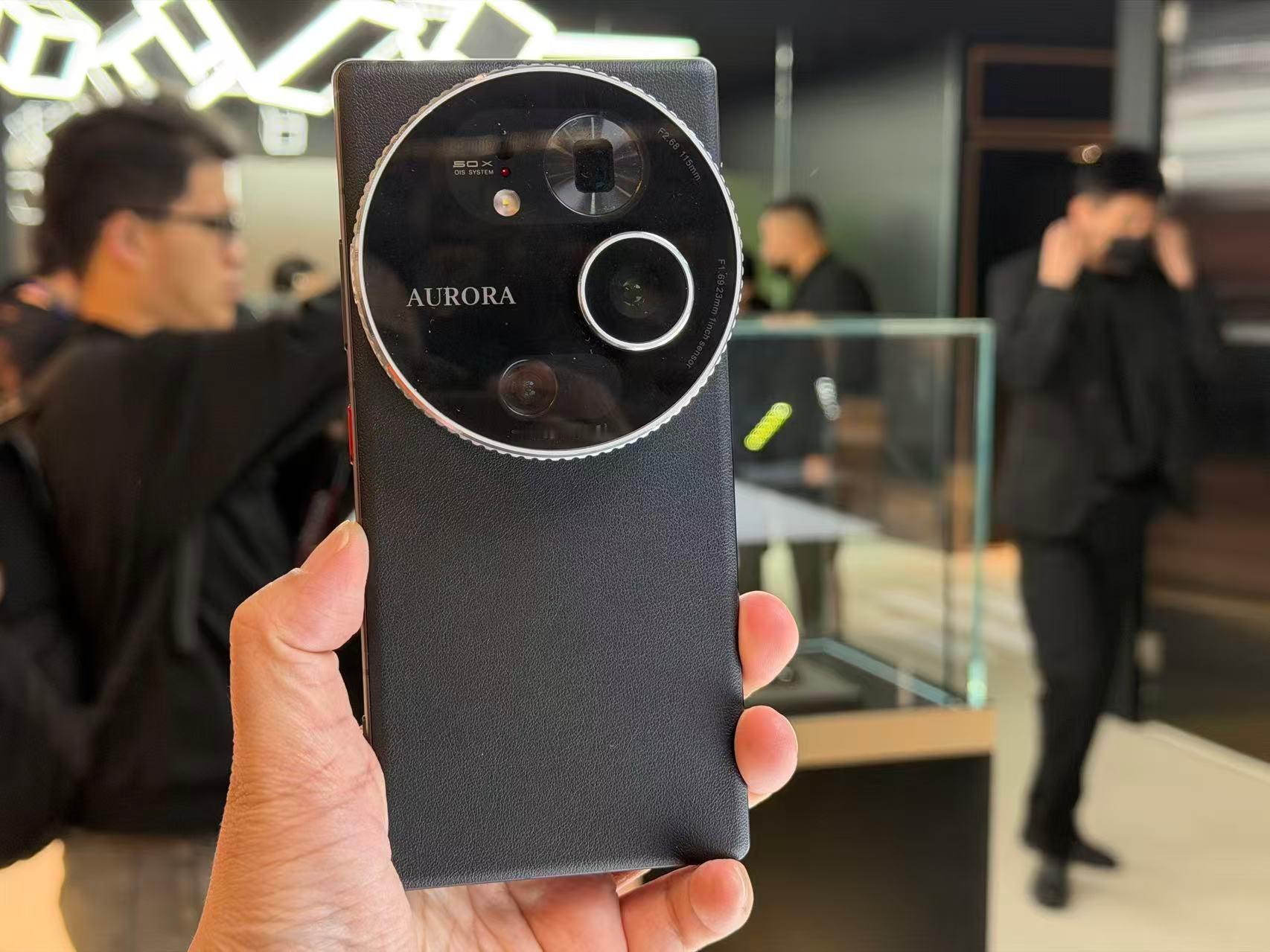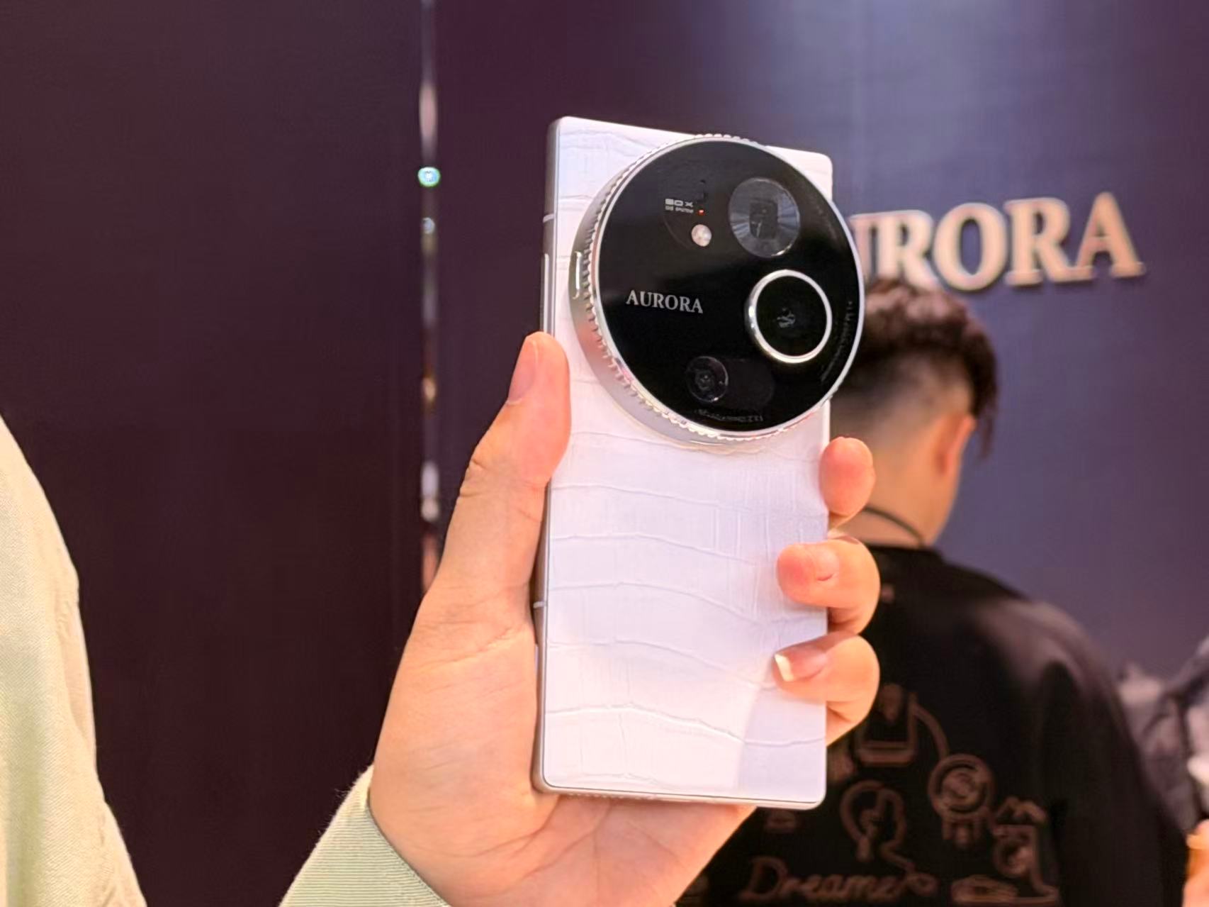 手机本体手感不错,后壳皮质材质很有质感,工作人员透露后续会采用换成鳄鱼皮工艺。当然目前追觅AURORA还处于概念阶段,量产版本值得期待!
