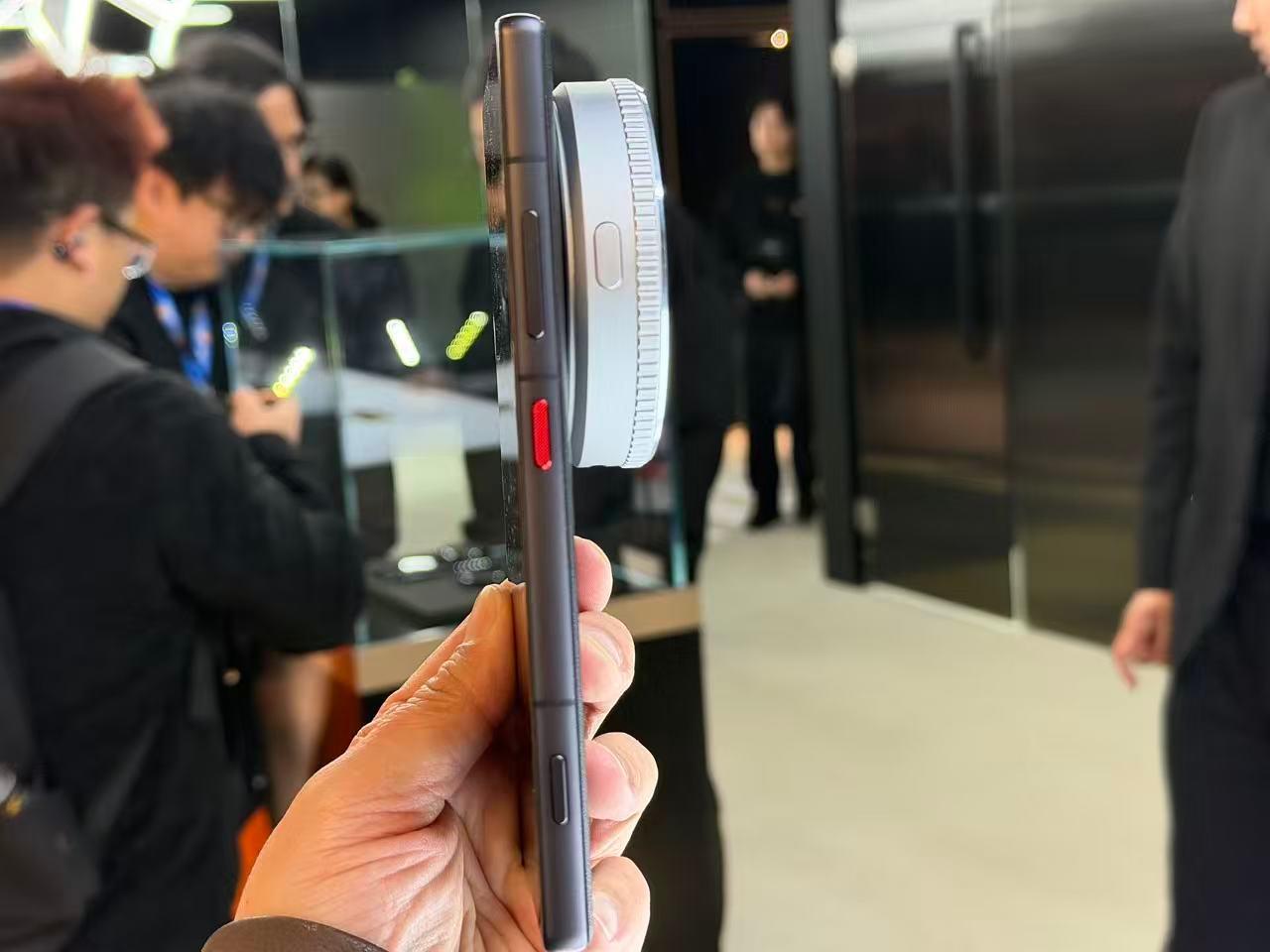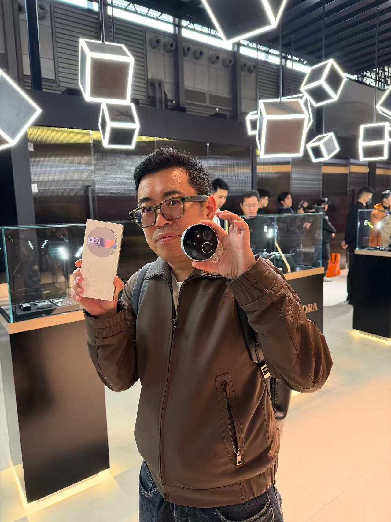 高端影像旗舰最大看点是磁吸式镜头,现场体验了一下,玩法还挺多的。镜头取下后,自拍、大合影、视频创作都更方便,使用场景可以无限拓展。