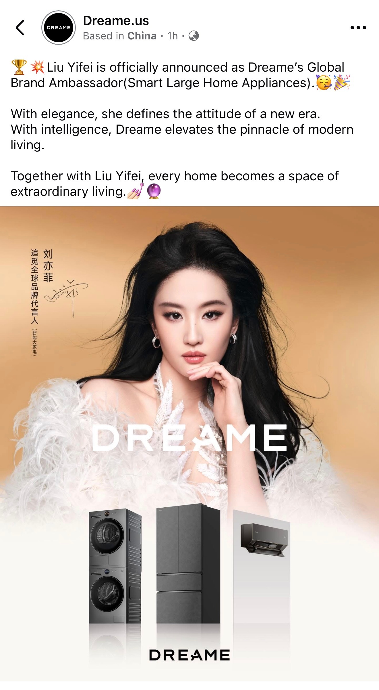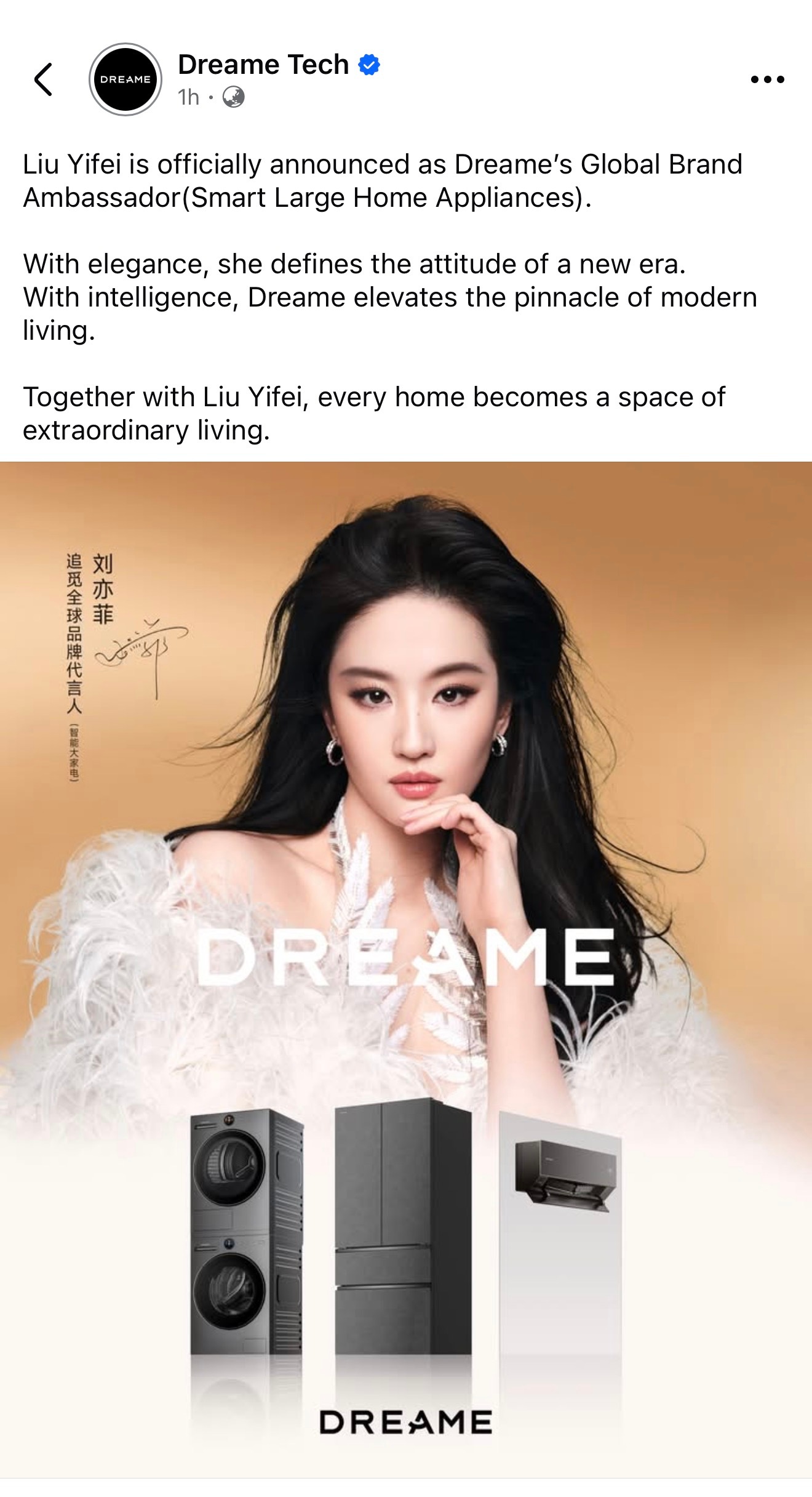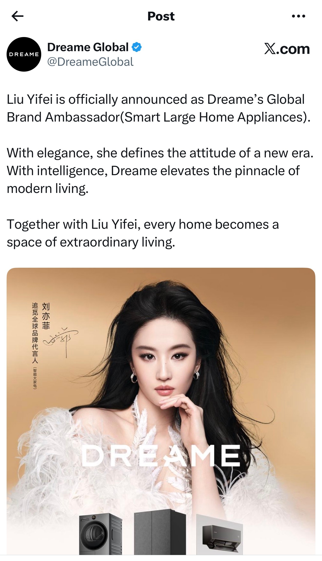 刘亦菲 lyf 刘亦菲追觅全球品牌代言人(智能大家电) Dreame 追觅全球全平台同步官宣全球品牌代言人刘亦菲:中文社媒平台,海外全球总号、中国香港、美国、新加坡、马来西亚、巴西、墨西哥、澳大利亚和新西兰、智利、日本、波兰、菲律普等刘大锤聊刘亦菲感情状况