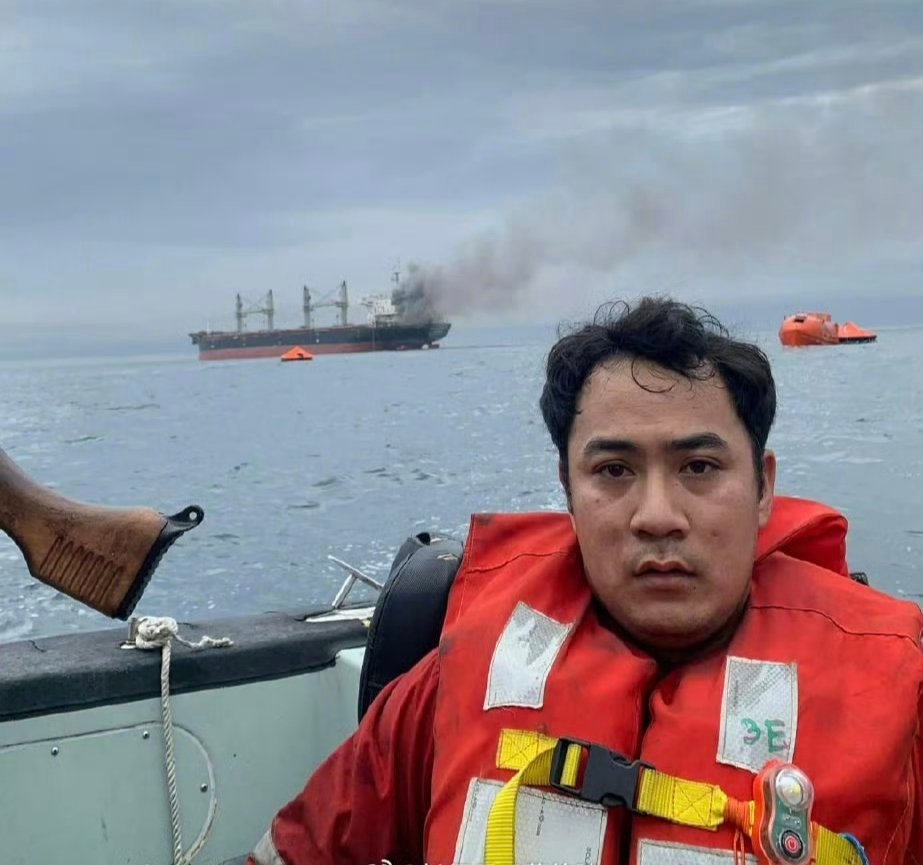 在霍尔木兹海峡附近遭到袭击的货轮Mayuree Naree上的一名泰国船员在社交媒体上分享了照片。