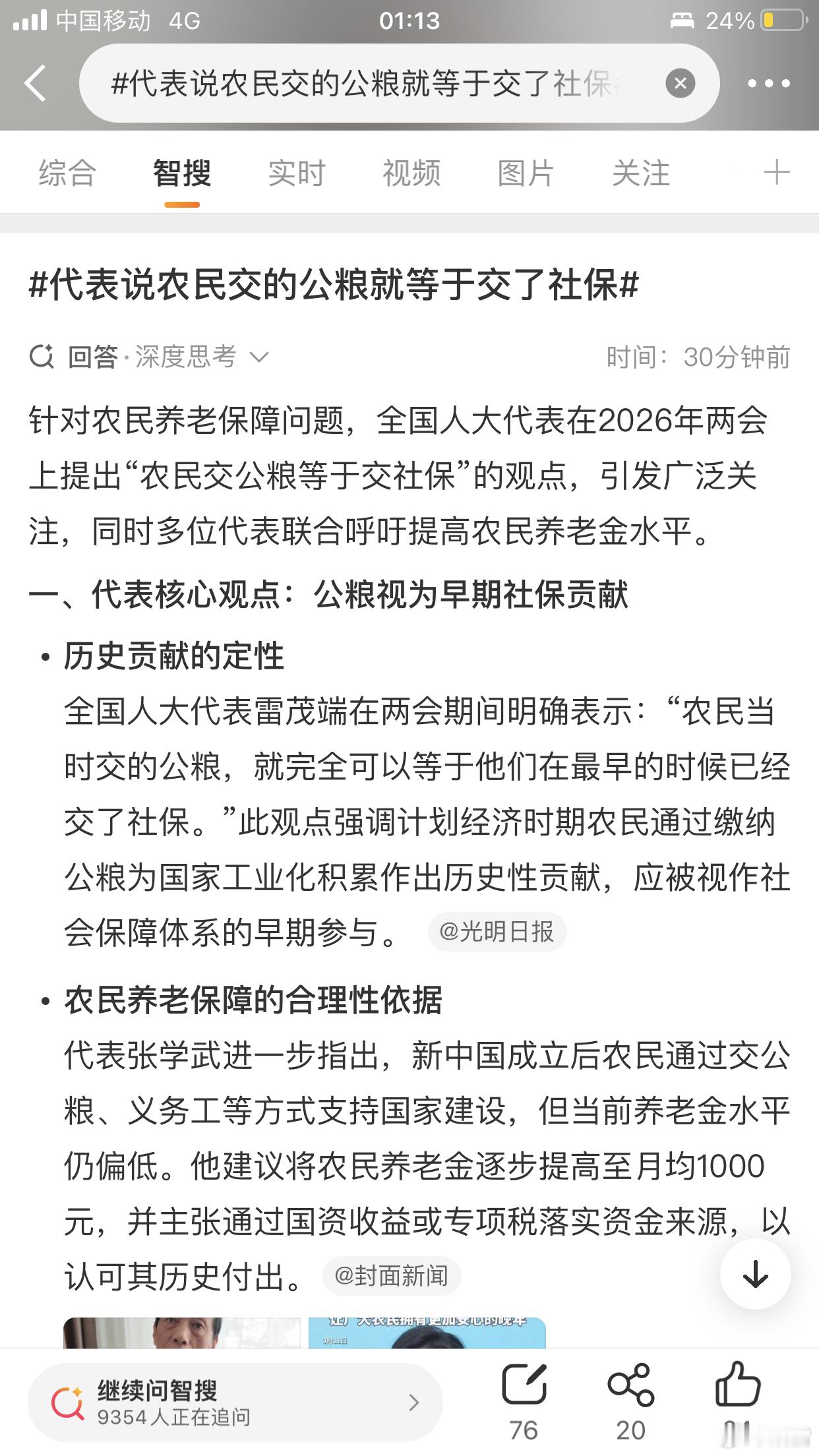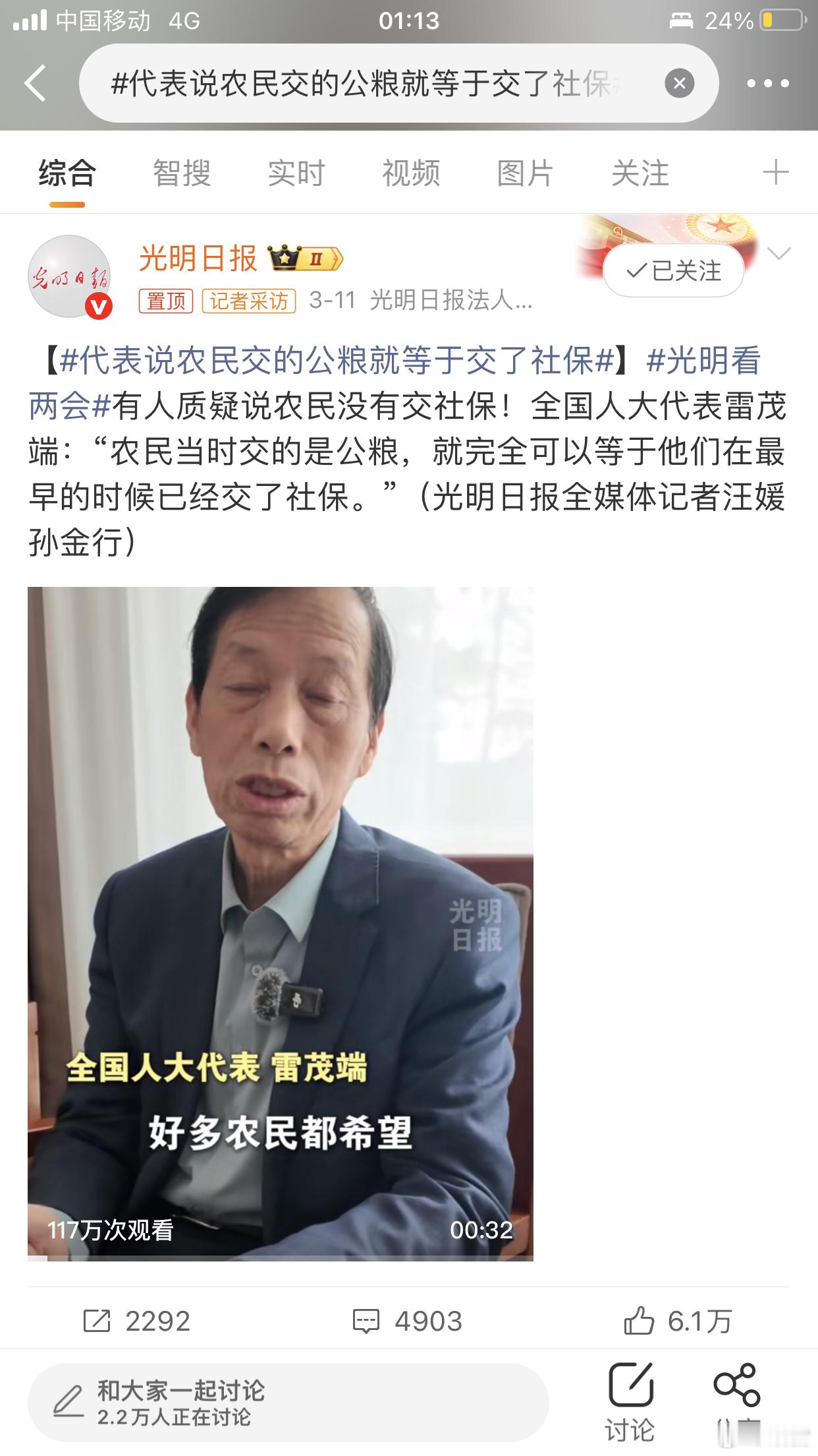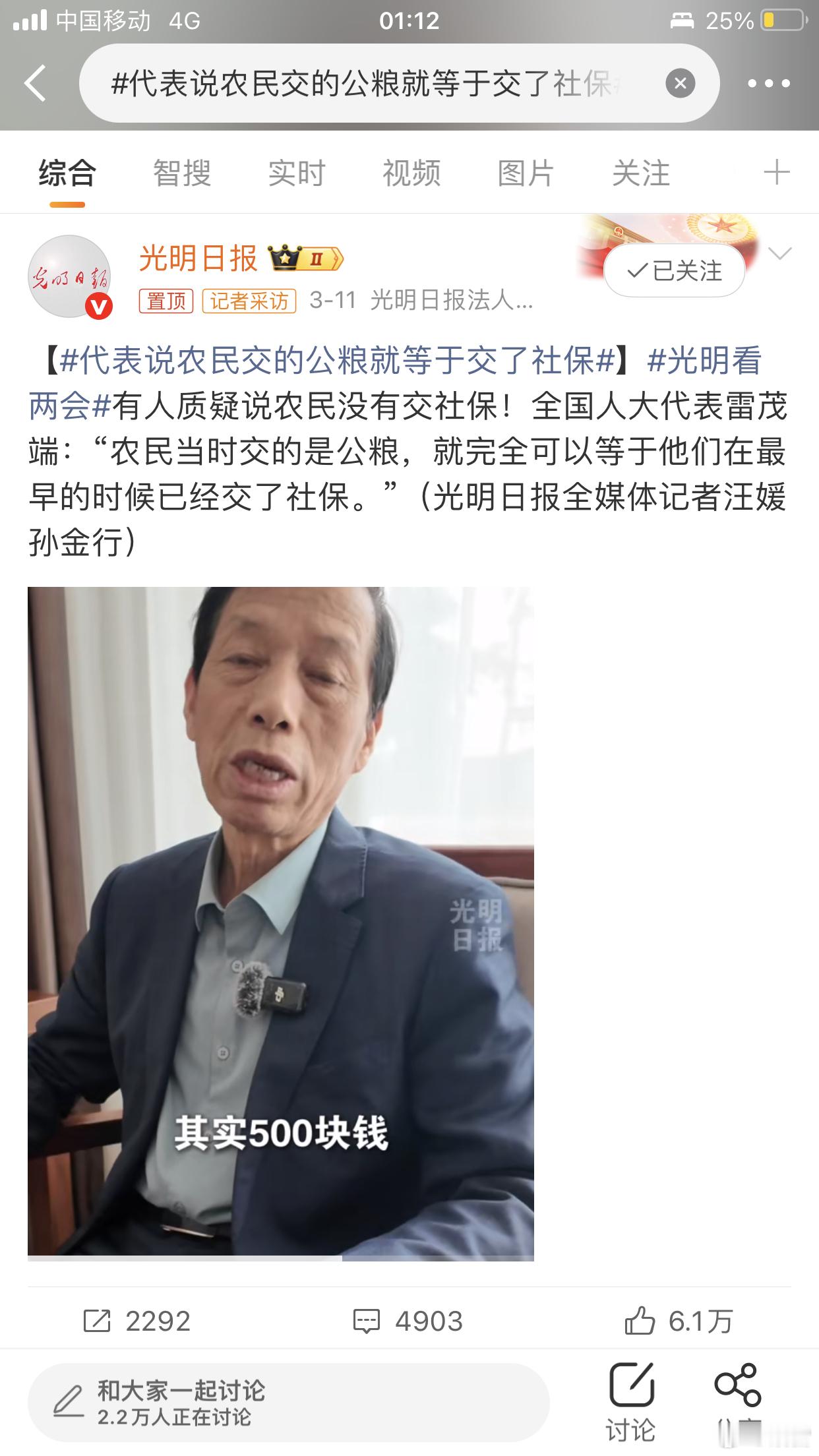 代表说农民交的公粮就等于交了社保建议国家高度关注农民的养老和医疗保障,让农民晚年更安心