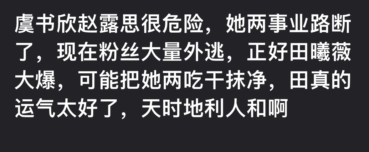 网友分析说,95🌸里面赵露思和虞书欣的粉丝很可能要被田曦薇吸走了