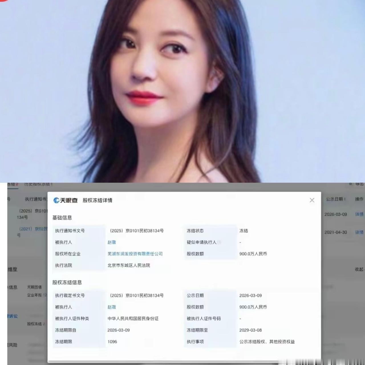 赵薇这回是彻底被“封”住了。 北京东城法院直接出手,冻结她芜湖公司900万股权,一封就是三年,直到2029年,相当于把她最后一条资本退路彻底焊死。 当年她顶着“女版巴菲特”的名头,用空壳公司加超高杠杆撬动数十亿资金,把资本市场当成自家提款机,完全无视普通股民的利益。从万家文化事件开始,她的法律纠纷就没停过,一笔笔旧账,如今都在集中清算。 900万对曾经的她来说只是零头,可现在股权接连被冻、资产处处受限,曾经的顶流风光早已荡然无存。说到底,不是运气不好,而是做人做事太没有底线,把名气和流量当成收割工具,最终只能自食恶果。 名气再大,也不能凌驾于规则之上;资本玩得再溜,也躲不过法律的清算。这条路走到今天,全是自己一步步作出来的。