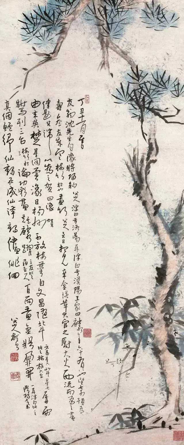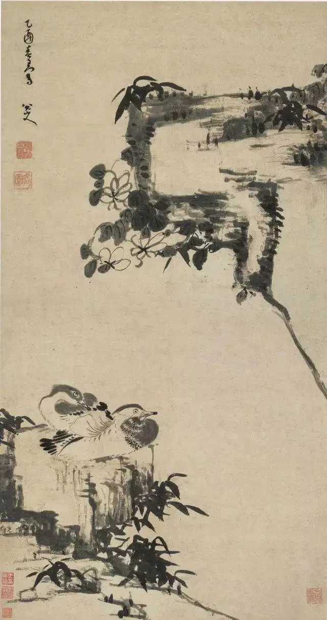 八大山人原为明朝王孙,明灭亡后,国毁家亡,心情悲愤, 落发为僧,以明朝遗民自居,不肯与清廷合作。他的作品往往以象征手法抒写心意,笔墨特点以放任恣纵见长,苍劲圆秀,清逸横生,对后世影响极大。遇见艺术这就是中国风