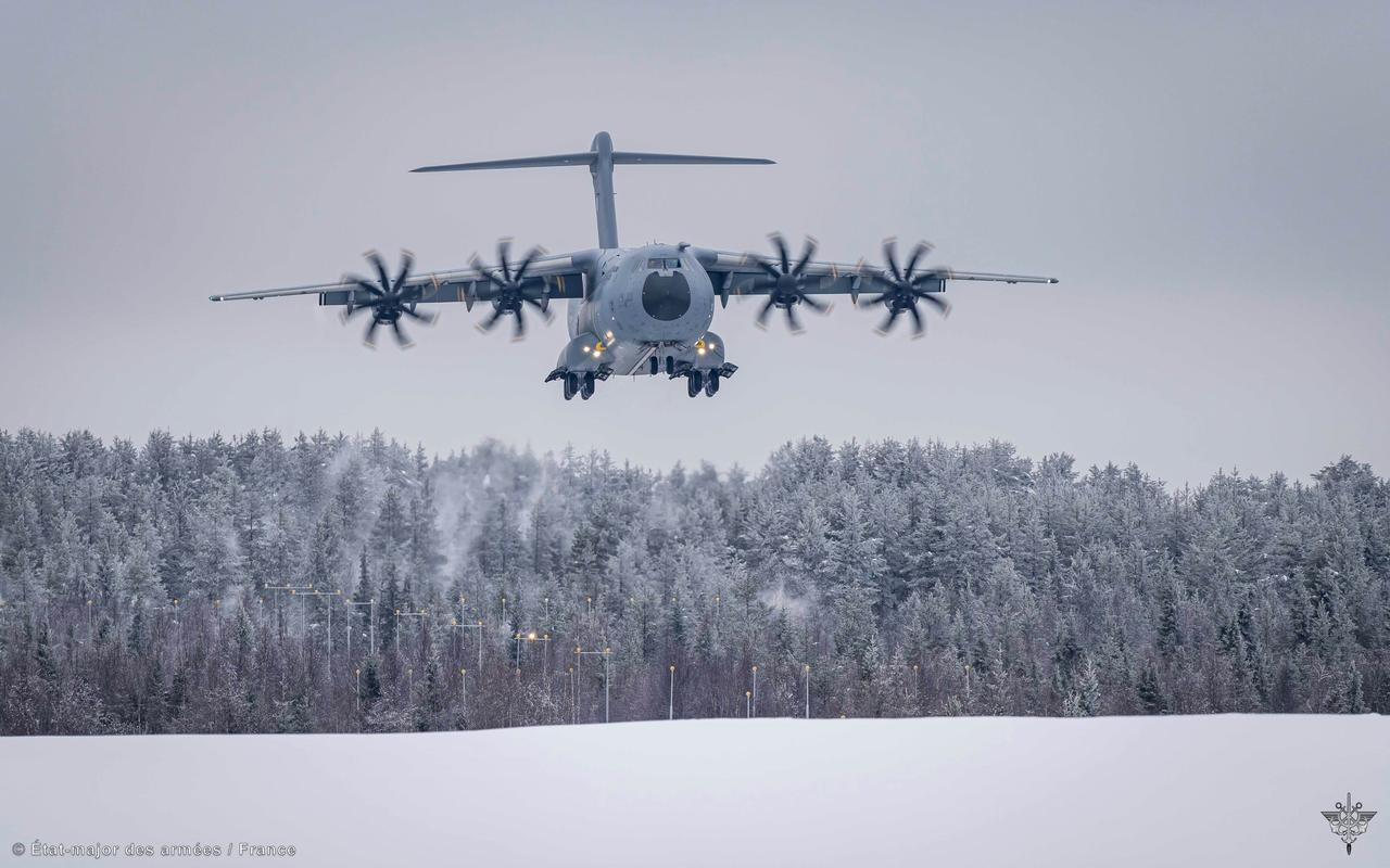 法国陆军乘坐 A400M 从奥尔良出发后,与27bim山地突击队一起前往芬兰拉普兰。 在极寒环境下,检验在短时间内迅速投射快速反应能力。