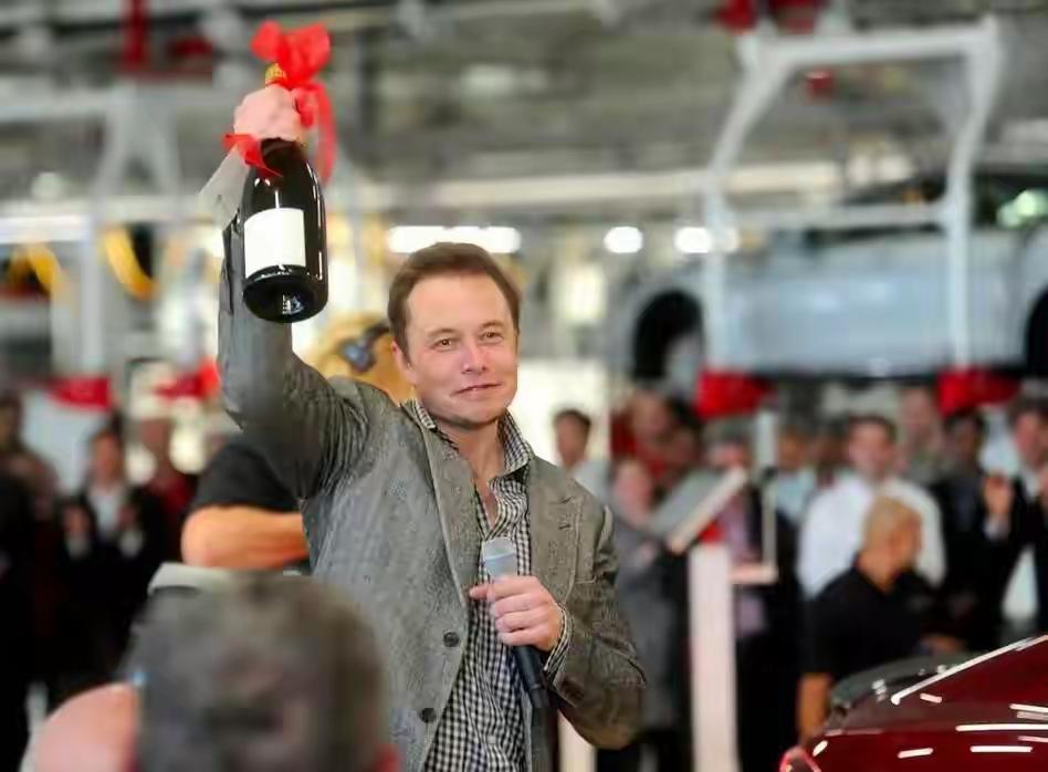 马斯克明明举的就是酒瓶,看起来却像举奖杯一样,大概是因为他自信惯了,酒瓶都举出了奖杯的气势。