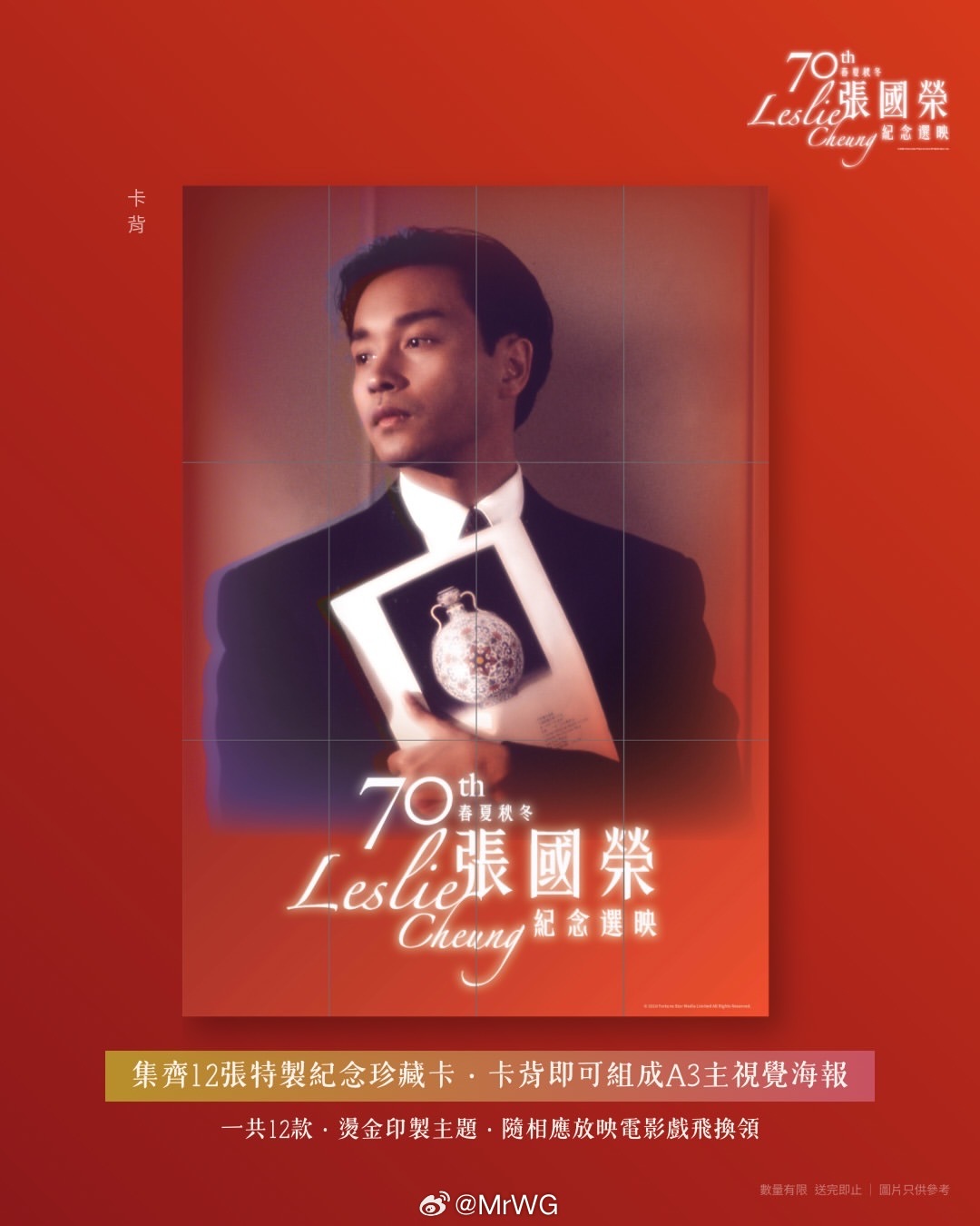 💌 纪念选映限定特典1️⃣“第70个春夏秋冬──张国荣纪念选映”特制纪念珍藏卡 ■ 一共12款,12部电影的烫金印制主题卡■ 集齐所有纪念珍藏卡,卡背面可组成这次纪念主题A3张国荣主视觉海报■ 4月1 日起,凭“第70个春夏秋冬──张国荣纪念选映”任何场次戏票一张,即可于K11 Art House前台换领相应放映电影之特制纪念珍藏卡一张■ 限量印刷,数量有限,先到先得,换完即止