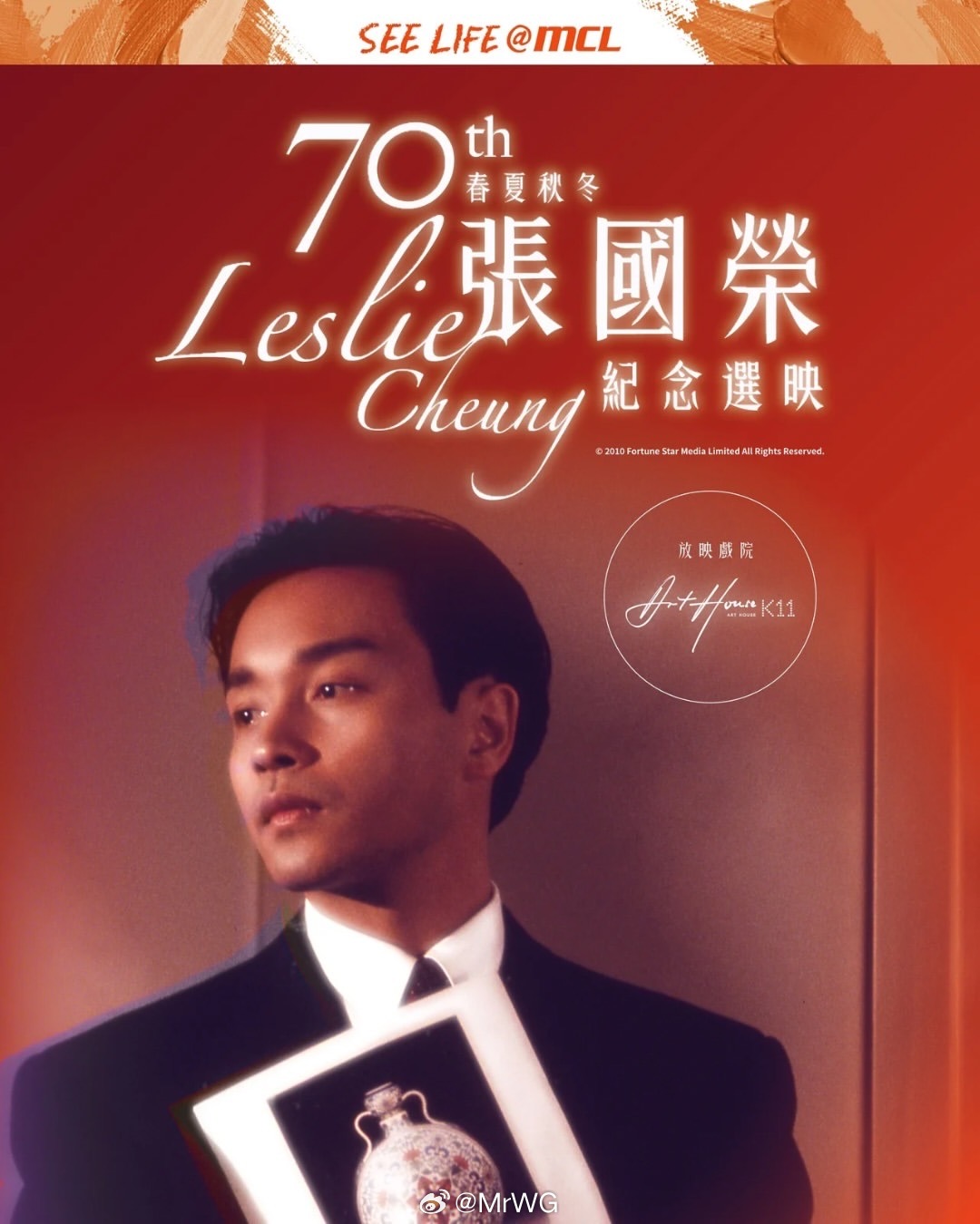 💌 MCL亦即将于社交平台启动《与哥哥共渡第70个春夏秋冬》活动,邀请所有年代与国籍的荣迷及影迷,于指定平台提交投稿,分享对哥哥张国荣的珍藏回忆及照片;成功投稿之个人珍藏照片,经过投稿者同意,将于特别放映场次展出,详情稍后公布。