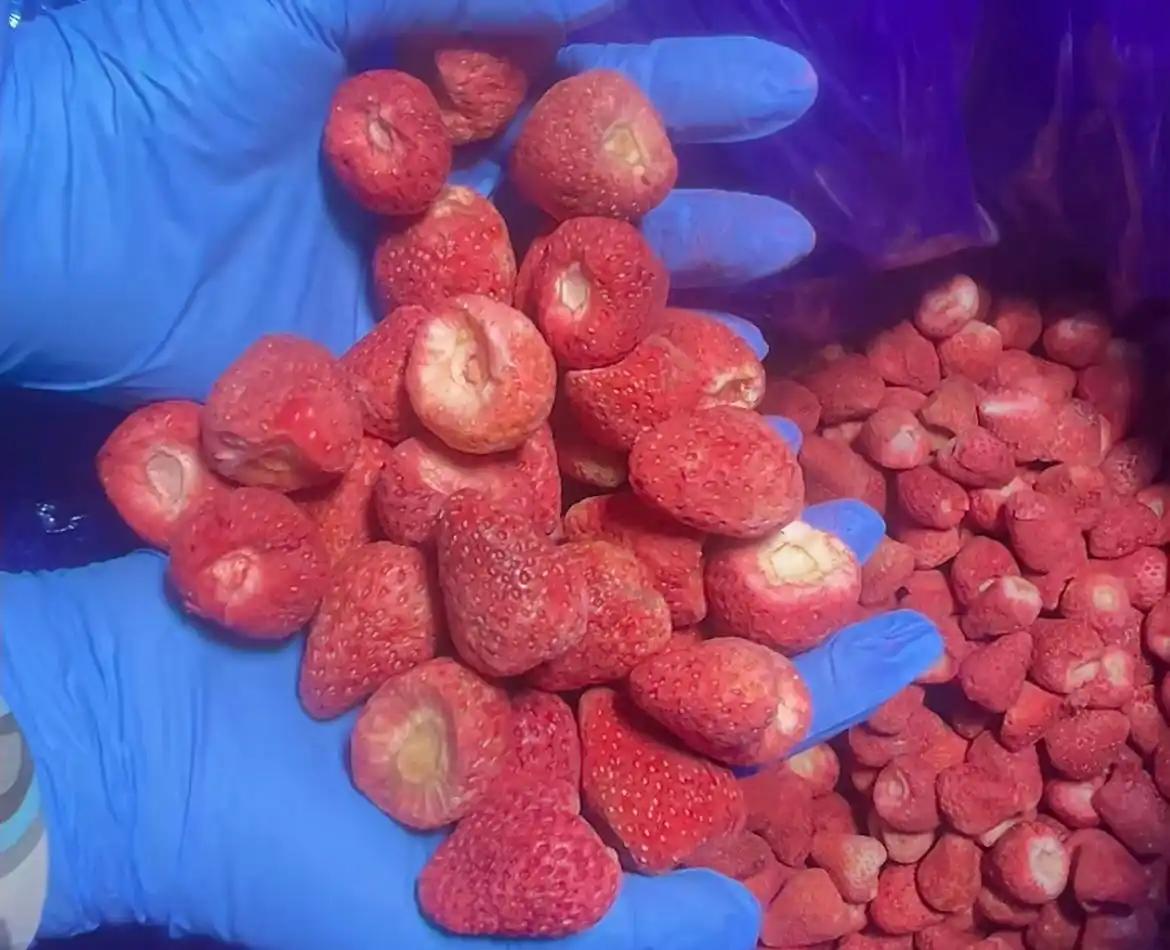 紧急提醒!冻干草莓查出20多种农药,镉超标14倍,很多人还在给孩子吃 家人们注意了!最近福建漳州有一家食品企业自检,查出了大问题——他们生产的加糖冻干草莓,竟然检测出20多种农药残留!更吓人的是,里面还有克百威、毒死蜱这些国家明确禁止用在草莓上的高毒农药,另外重金属镉也超标了,足足比国标多14倍! 跟大家说个关键信息,这批有问题的冻干草莓,原料都是当地散户种的草莓。而涉事企业也太不负责任了,既不查原料来源,也不每一批都检测,直接就拿去加工了。懂行的人都知道,10斤新鲜草莓才能做出1斤冻干的,水分一蒸发,农药和重金属就被浓缩了10倍,这就是为啥冻干的农残更容易超标! 这事曝光后,当地市监部门已经火速介入了!涉事企业已经被停产整顿,有问题的产品也都被封存了,同时还在对当地所有冻干草莓厂家进行大排查,重点查原料采购和检测这两个关键环节,不让问题产品流入市场。 最后给大家提个醒,不是说检出农残就一定不能吃,但禁用农药和镉超标是真的有健康风险!长期吃镉超标的东西,会伤肾、影响骨骼发育,高毒农药还会伤肝、伤神经。建议大家买的时候,优先选大品牌、能查来源、没有额外添加的,别多吃;家里有孩子、孕妇的,不如直接买新鲜草莓,洗干净了吃更放心。