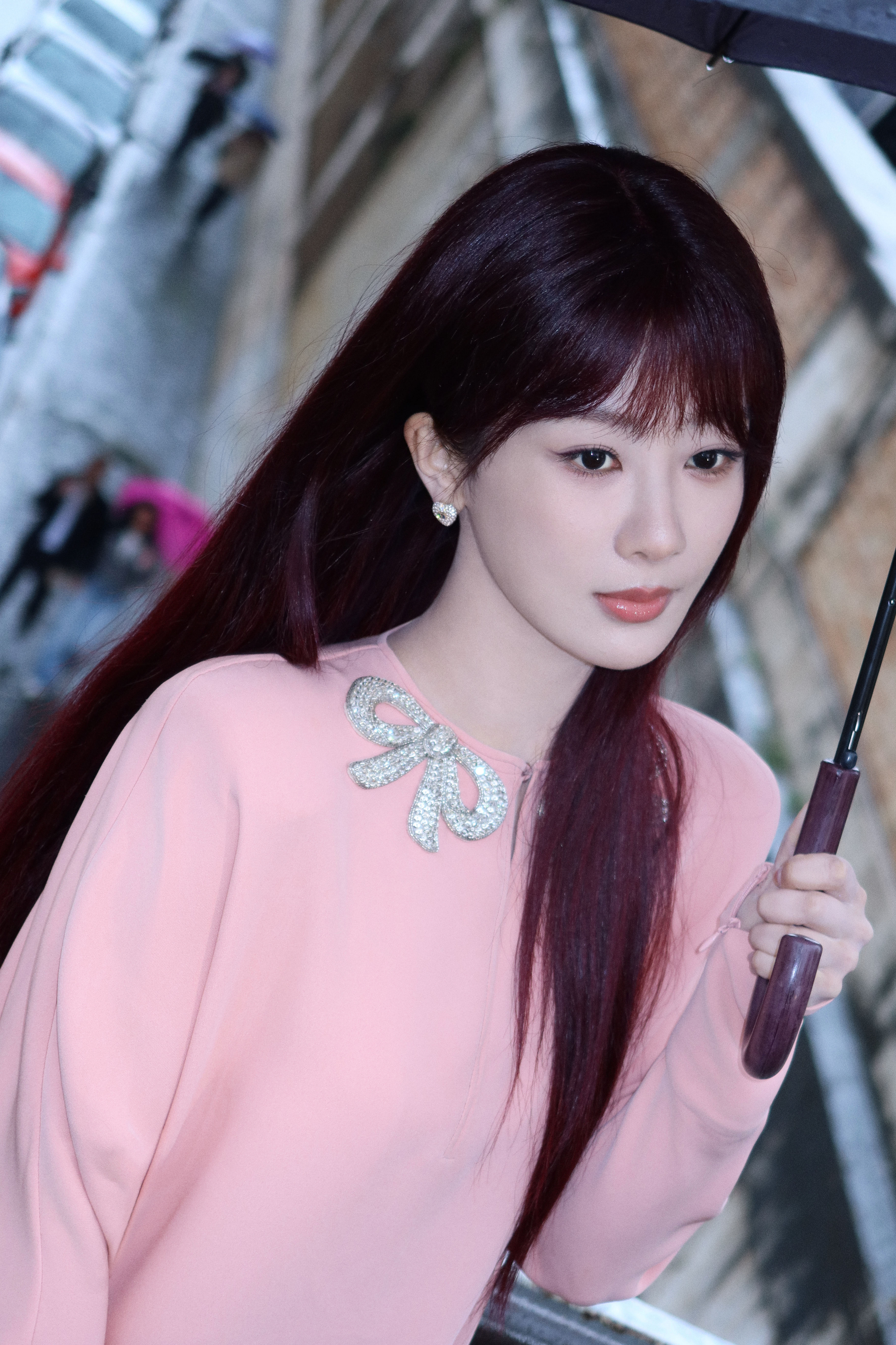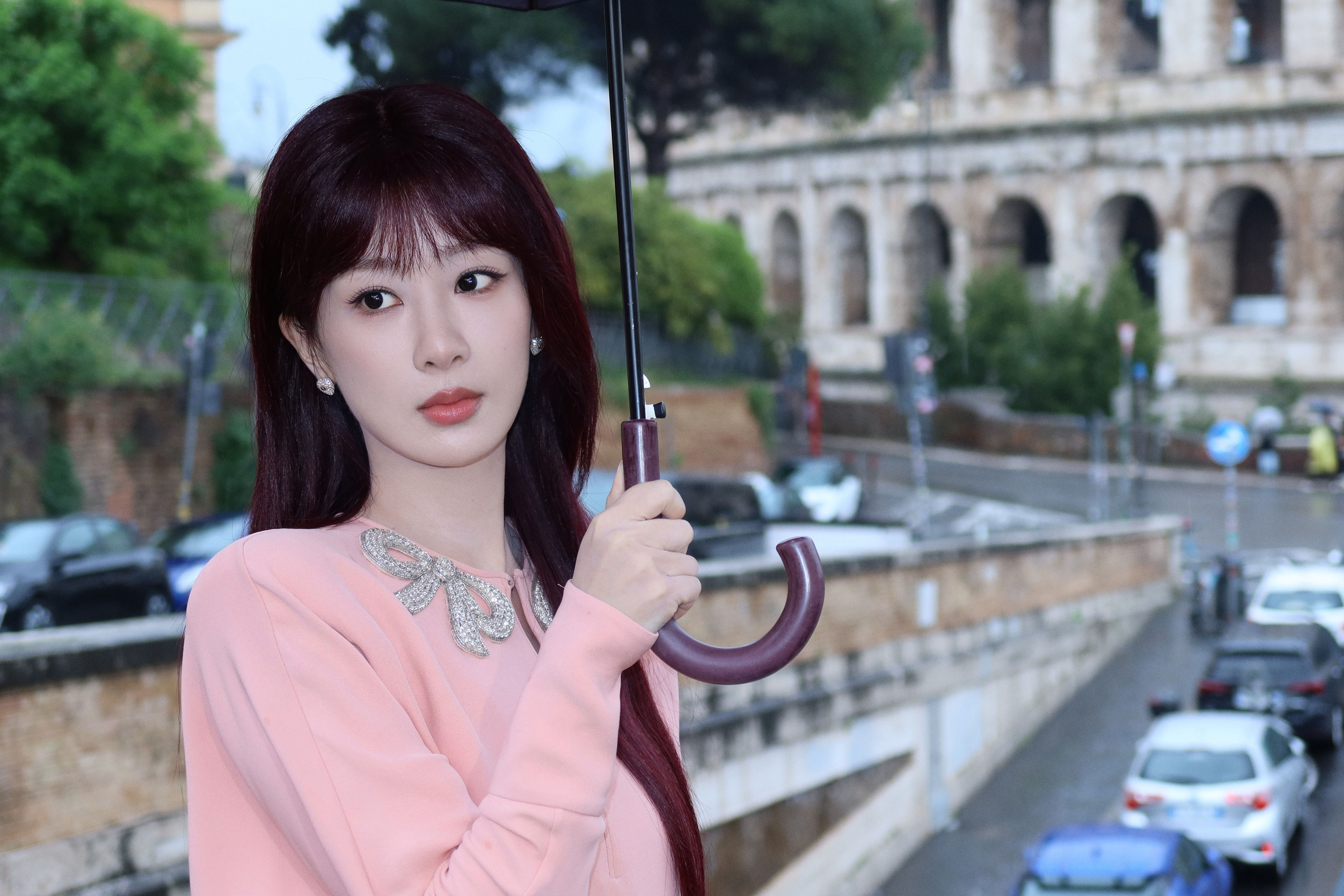 雨中的罗马街头,杨紫以一抹炽烈红发亮相,步履从容,气场全开。