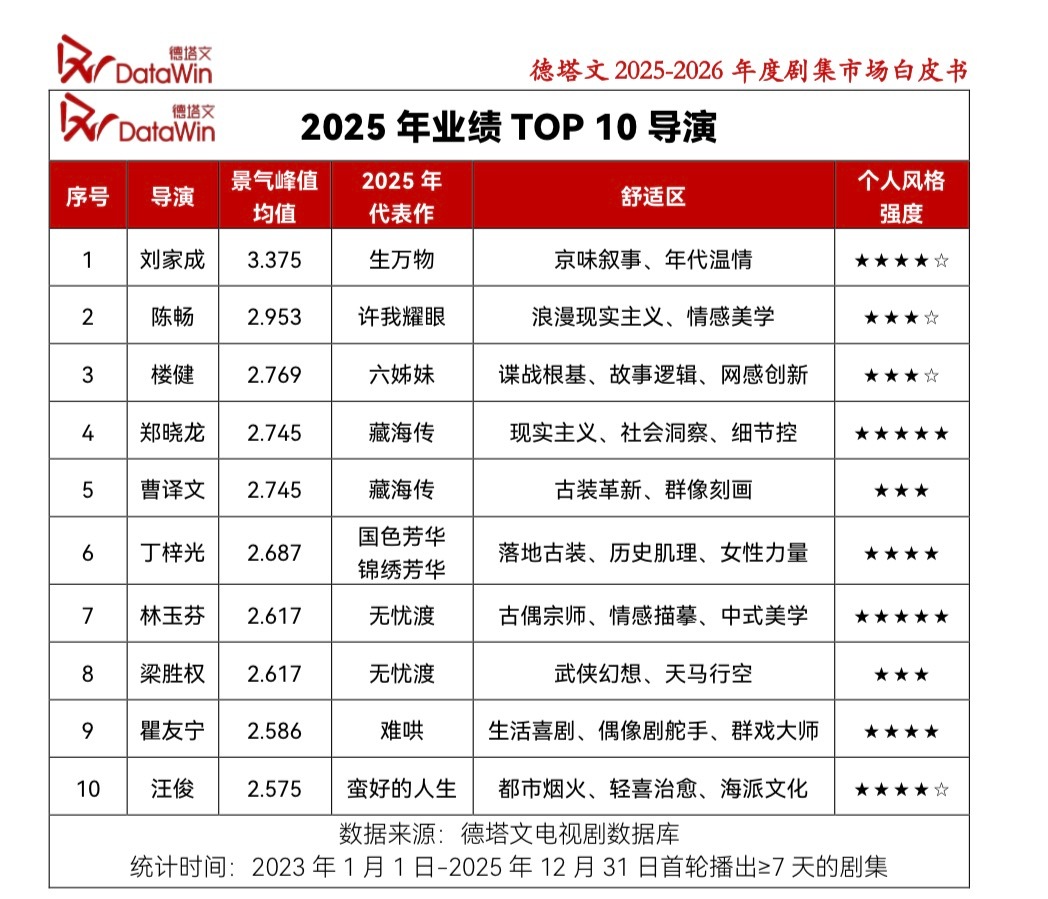 德塔文2025-2026年度剧集市场白皮书内杨幂主演《生万物》登2025年度剧集景气指数Top1(2.714)🏆景气峰值均值3.375,刘家成导演和王贺编剧成为年度业绩Top1