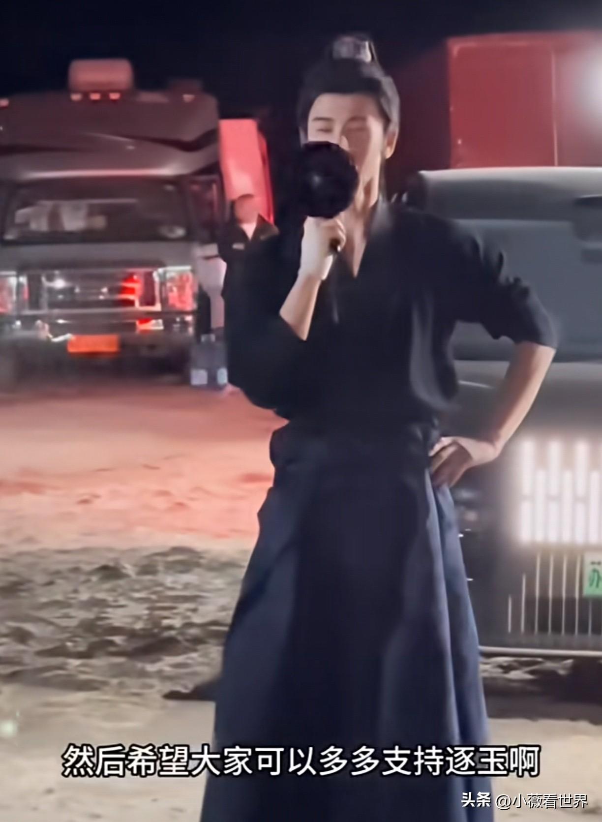 没想到张凌赫拍新戏间隙,还不忘安利他正在热播的电视剧《逐玉》。 最近,由张凌赫、田曦薇主演的《逐玉》正在腾讯、爱奇艺双平台播出,据说15分钟热度就破23000,单日播放量破亿。 Netflix全球同步播出,连影后惠英红都熬夜追更,这波热度直接焊死热搜! 不得不说《逐玉》是太受欢迎了!这部讲述屠户女樊长玉和落难侯爷谢征先婚后爱、战场并肩的电视剧,反常规,人设带感,剧情有甜有虐有燃点。 导演更是太会拍了,把本来就是帅哥美女的男女主角,借助光影画面,拍得更唯美了。 而主演谢征的张凌赫也是非常敬业,如今在外拍戏下班间隙,也不忘和粉丝影迷见面,并安利他的热播剧《逐玉》。 估计来的粉丝影迷太多了,他只能借助喇叭和大家喊话,除了安利《逐玉》外,也感谢大家来看他,并祝大家财源滚滚。 最后还合影留念!不得不说张凌赫虽然很帅,但人品也是杠杠的,这番热情互动,真是太贴心了。