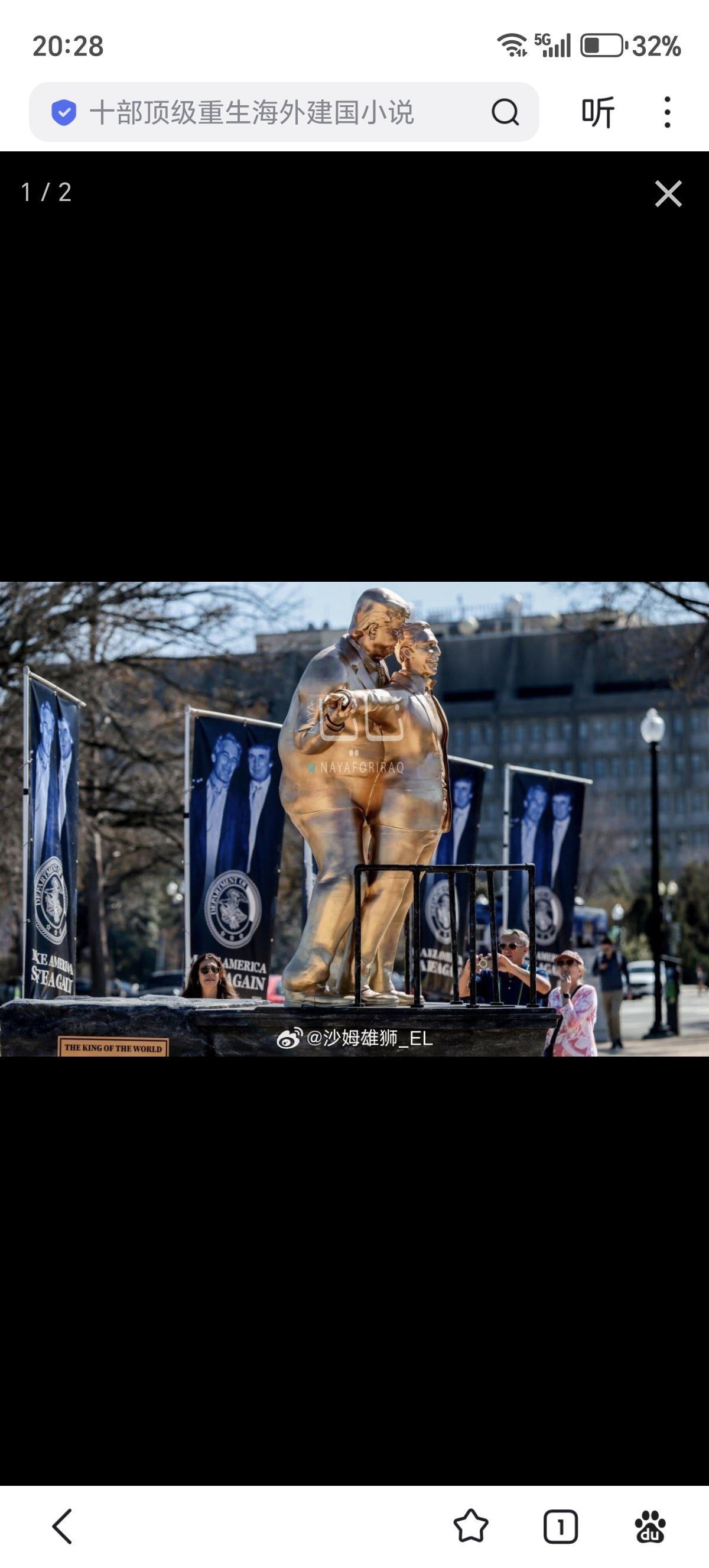 白宫前面有人整活,放置了一座模仿《泰坦尼克号》电影桥段的特朗普—爱泼斯坦真爱雕塑