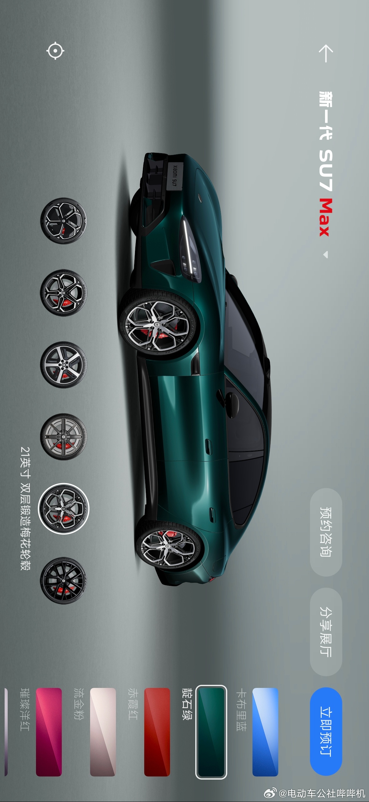 小米su7靛石绿 最后一款车漆颜色公布,新款小米SU7的9款颜色已经全部在此。