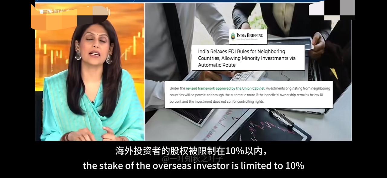 印度最近在国际舞台上频频展现大国风采。 甲亢姐列举了印度专门为东方国家投资的具体文件与具体投资意见指导。 东方大国想蹭印度发展红利但必须有过规则,股权不能超过10%,不能进入董事会,不能指导公司的决策。 想改善与印度的贸易关系,必须得遵守印度的文件以及印度的各项法律法规。