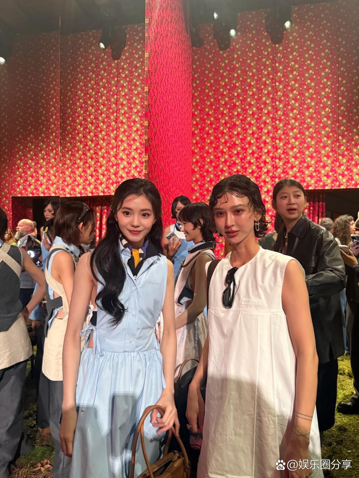 刘浩存李庚希巴黎同框比心,直接把MiuMiu的少女感撕成两种完全不一样的味儿。