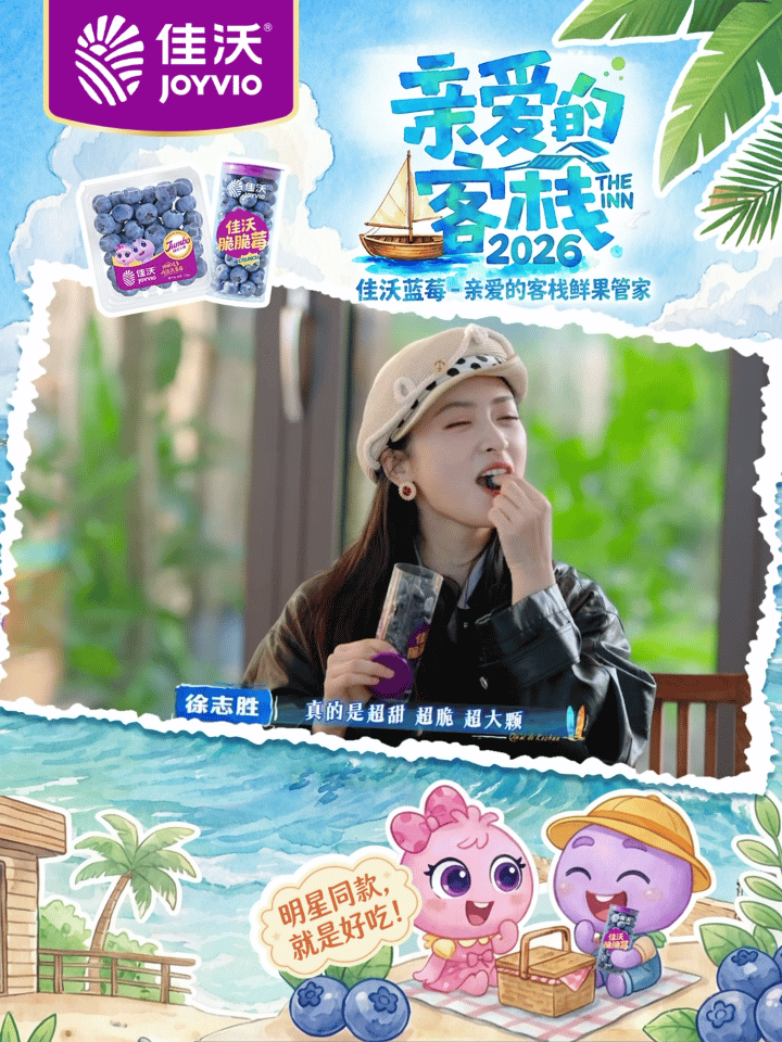 在《亲爱的客栈2026》中,沈月和徐志胜都在力荐的佳沃蓝莓,瞬间成为春日必备的护眼美味。无论是工作间隙的放松,还是追剧时的零嘴,一颗饱满脆甜的蓝莓入口,即刻解锁清爽又滋养的片刻。