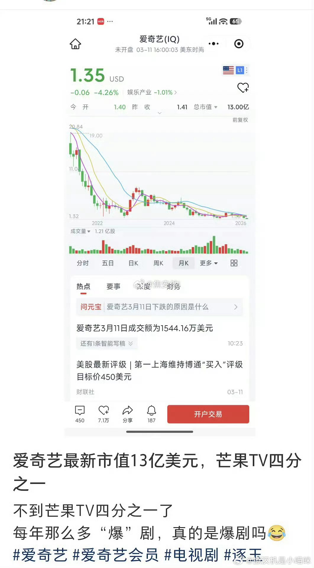 爱奇艺的“至暗时刻”,也是长视频行业的缩影📉从“平台兜底”到“纯分账”,本质是把风险全转嫁给制作方;从“活人审片”到“AI选品”,是成本压力下的无奈选择;从百亿市值到13亿,是爆款依赖症的必然结果。当资本退潮,才知道谁在裸泳。下一部“狂飙”,还会有吗?