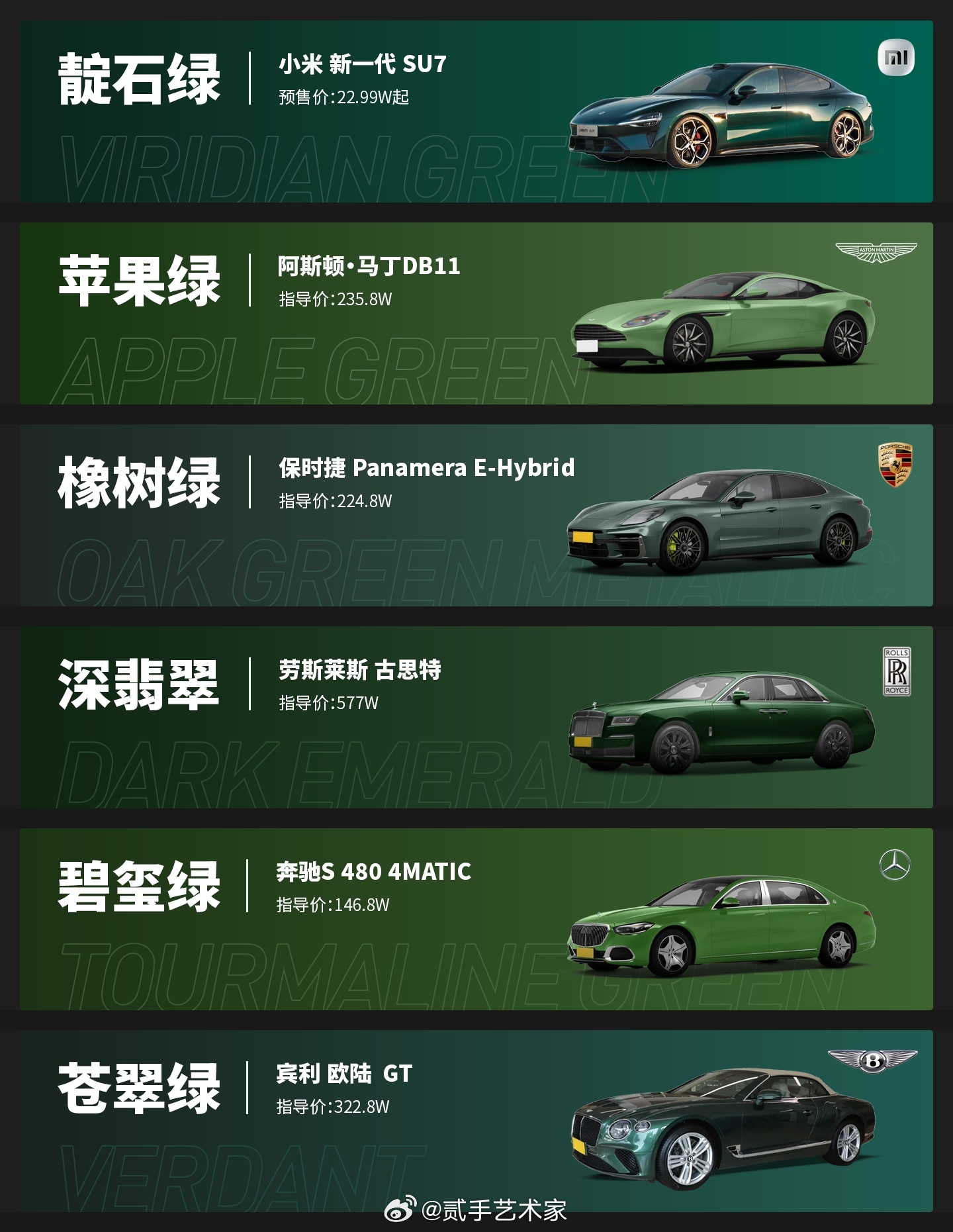 随着小米SU7最后一款配色“靛石绿”官宣,九色版图终于集齐。